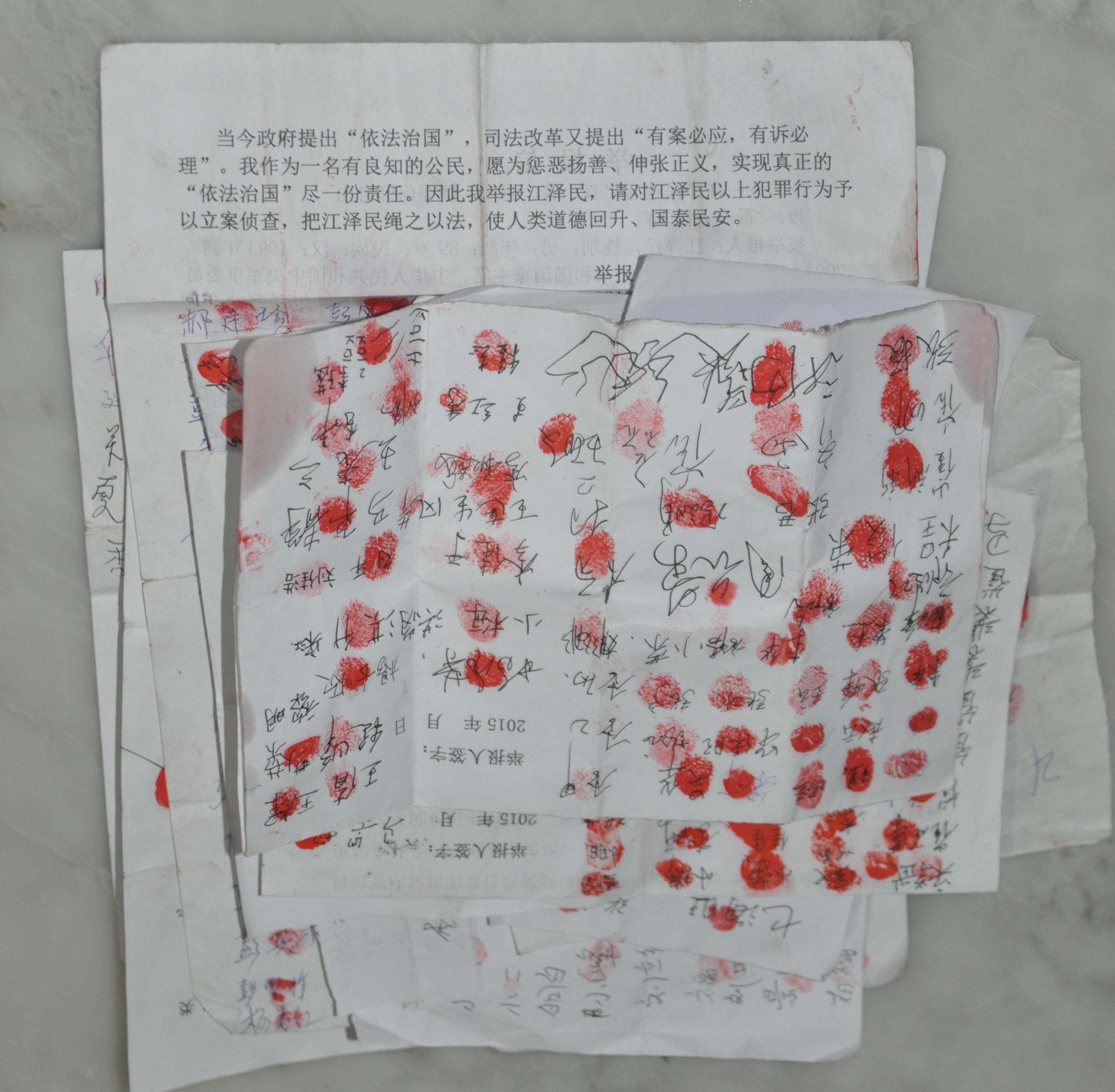 ![]() 图1:遵化地区百姓签名举报江泽民 |