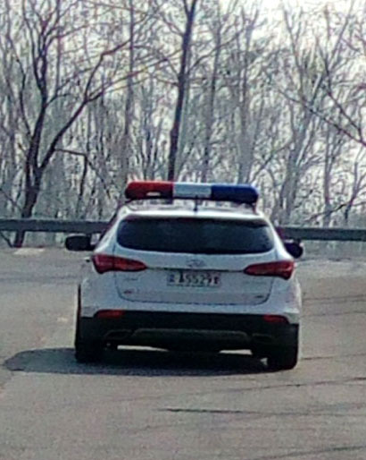 过一会儿,有警车送出法轮功学员庞有,里面坐着三、四个警察。