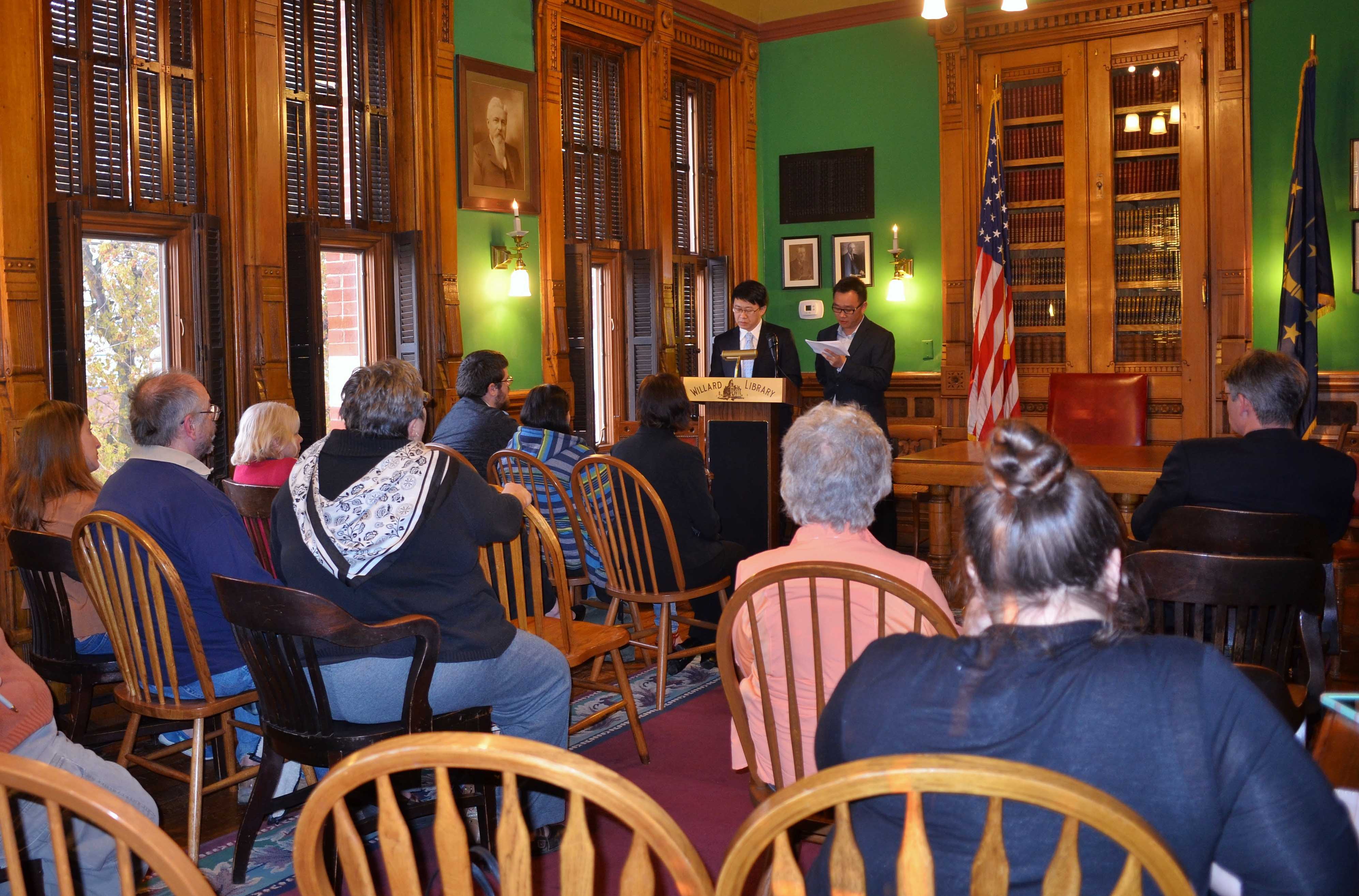 【明慧网二零一六年四月十五日】二零一六年四月十一日和十二日,印第安纳州法轮功学员连续在埃文斯维尔市(Evansville)和普度大学(Purdue University)史都华中心(Stewart Center)举行了两场退!党!研讨会。纽约退!党!服务中心公关主任汤姆金斯(David Tompkins)和前中国空军少校胡志明在论坛上发表演讲,同日并进行了退!党!图片展览,吸引了不少民众前来参加。