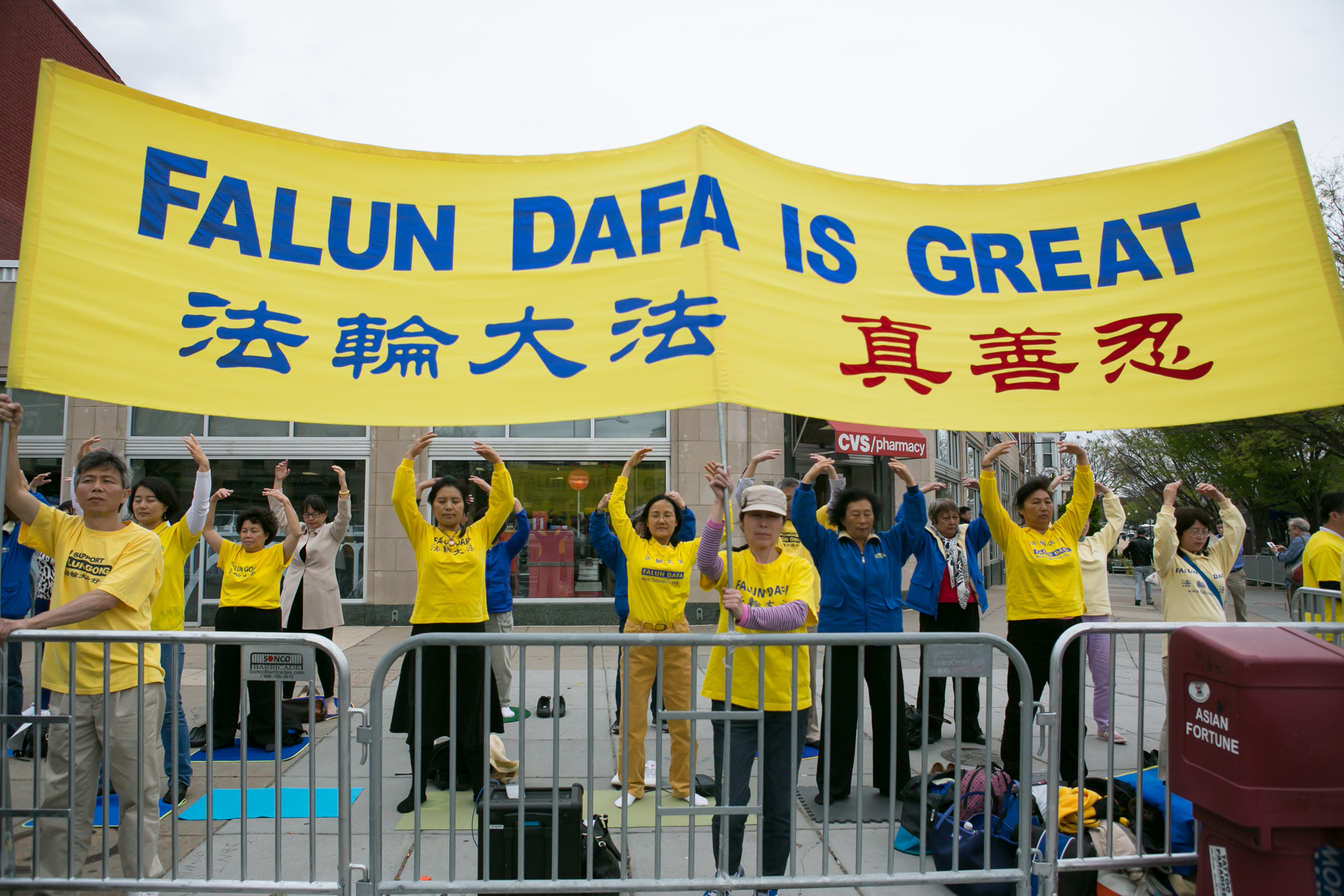 在华盛顿DC工作的法轮功学员邹先生请了几天假,从早到晚在康涅狄格大道路边举横幅﹑炼功。他说:“这个机会对华人来说真的很难得,中共领馆花这么多钱,送他们到这里来,让他们看到法轮功功法演示,了解法轮功真相。大多数人都很善良,只是被中共诬蔑法轮功的造假宣传迷惑,很多人在接触我们的几天中都了解了法轮功真相。”