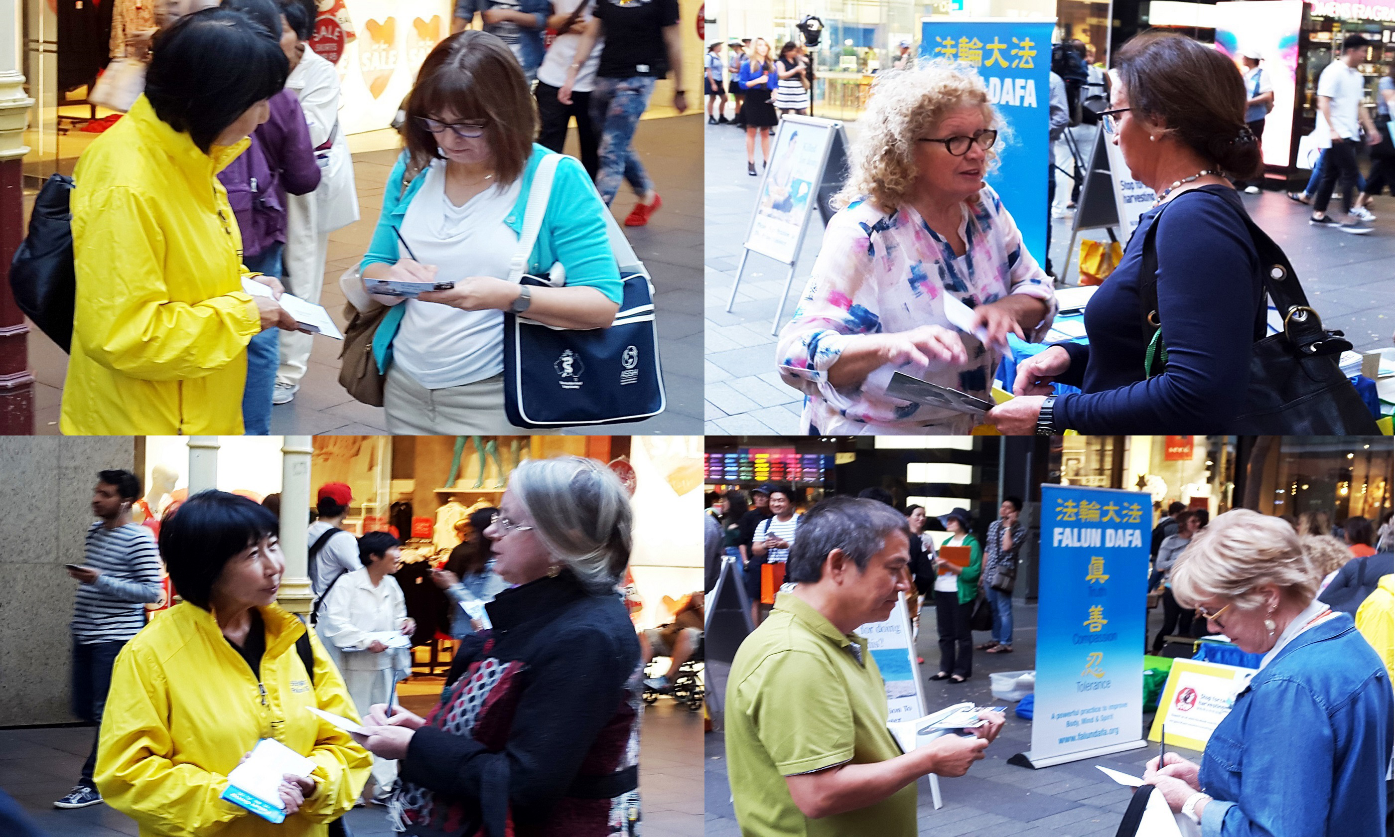 她询问:我可以做什么来帮助制止迫害?当听闻可以用自己个人的名义在给澳洲总理的明信片上签名、邮寄给总理时,伊溯竹女士当即放下购物包签名,她希望澳洲总理在访华期间,一定代表澳洲人要求中国现任领导人立即停止迫害法轮功,把迫害者绳之以法!