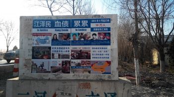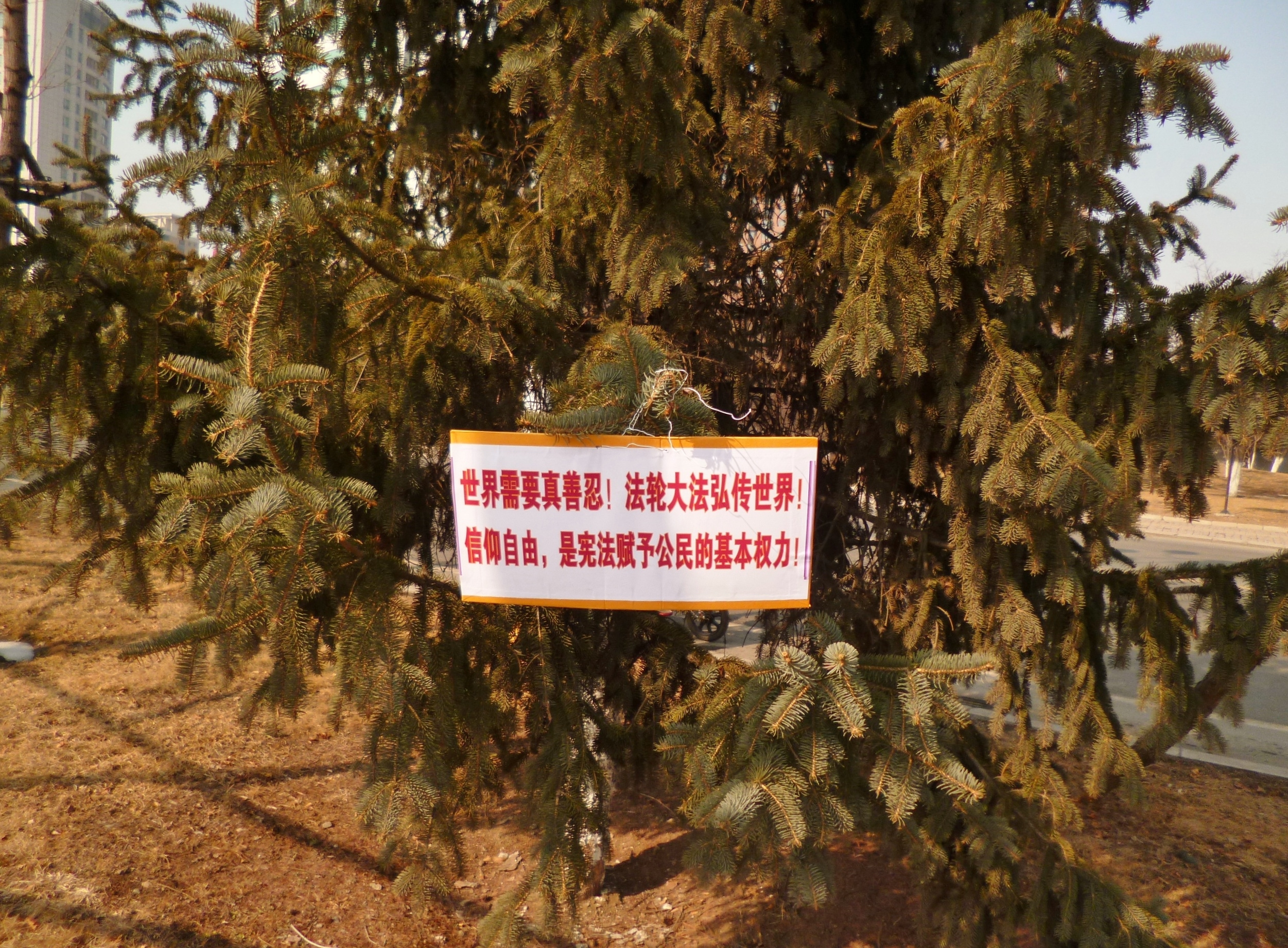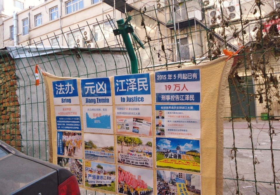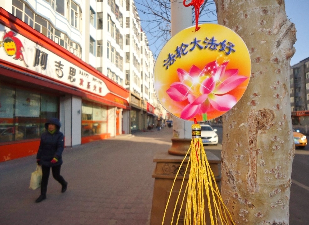 哈尔滨、吉林、廊坊、保定街头的真相展板、条幅