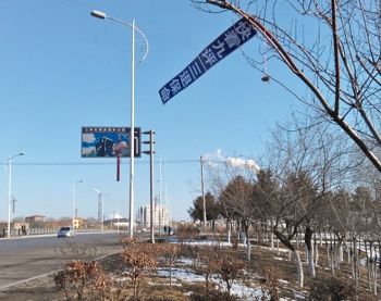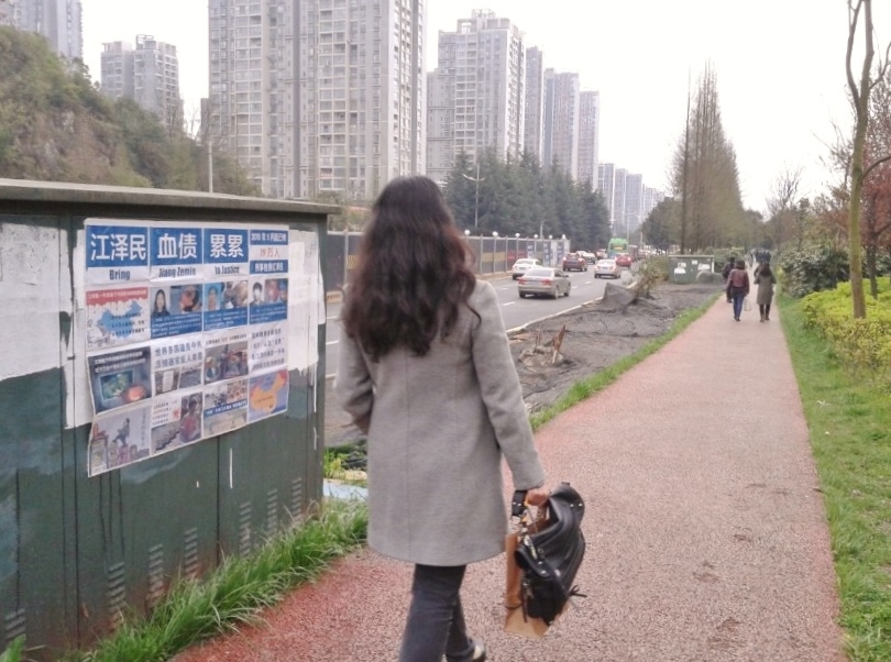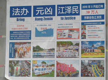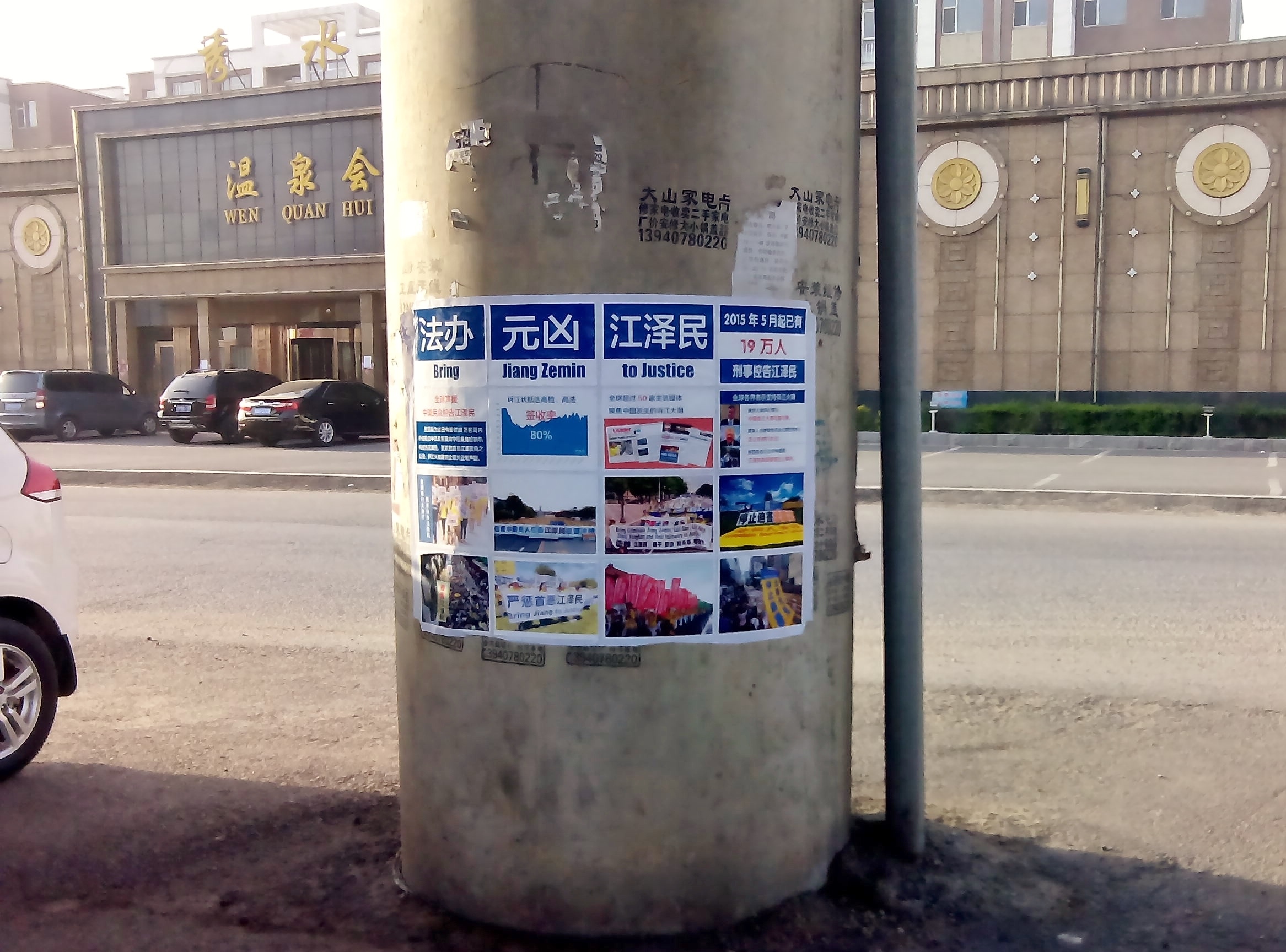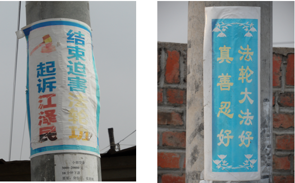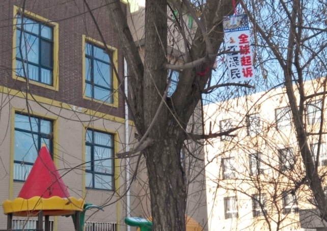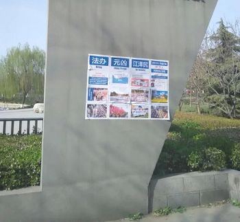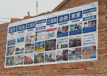 抚顺市城市乡村出现的诉江展板和真相条幅