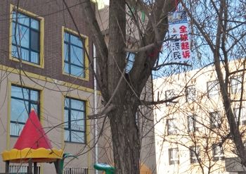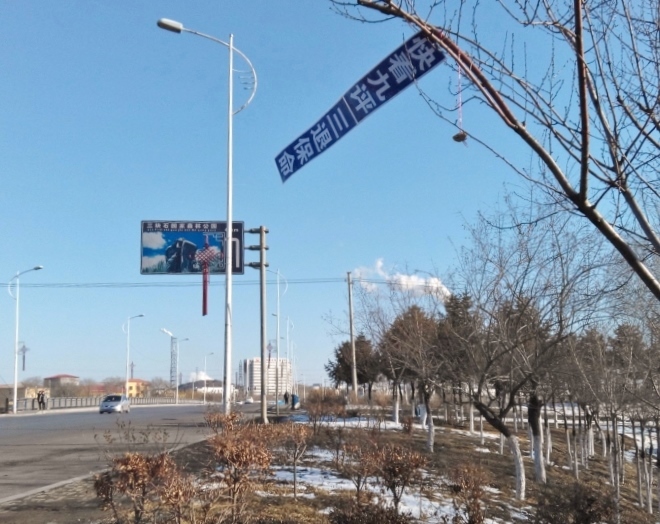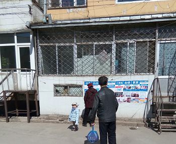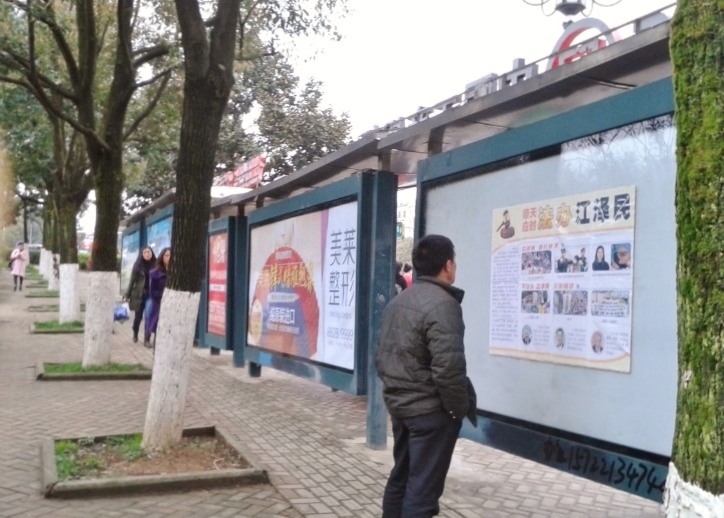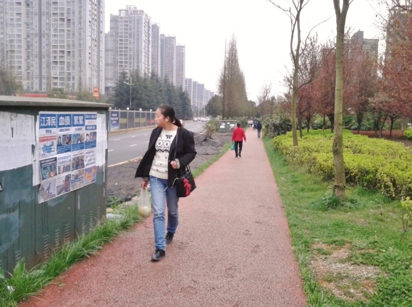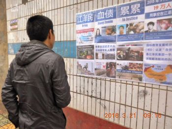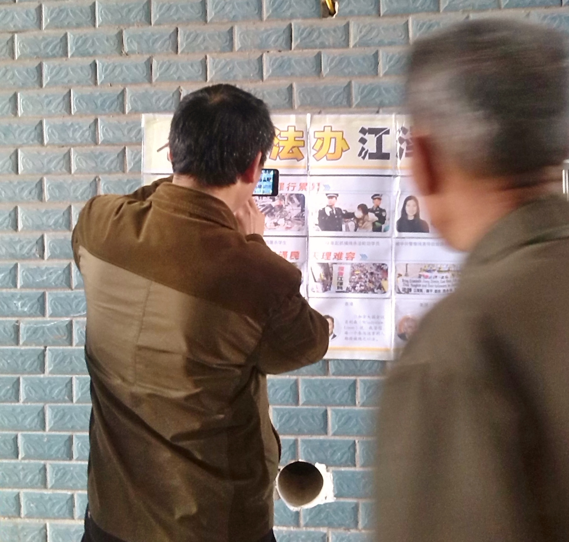 黑龙江省某地居民区的诉江展板吸引路人观看