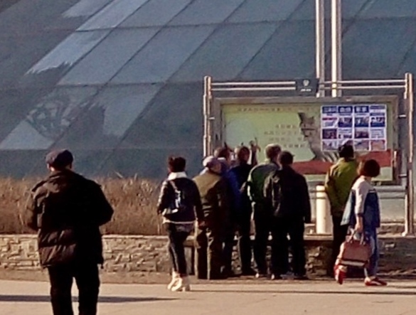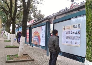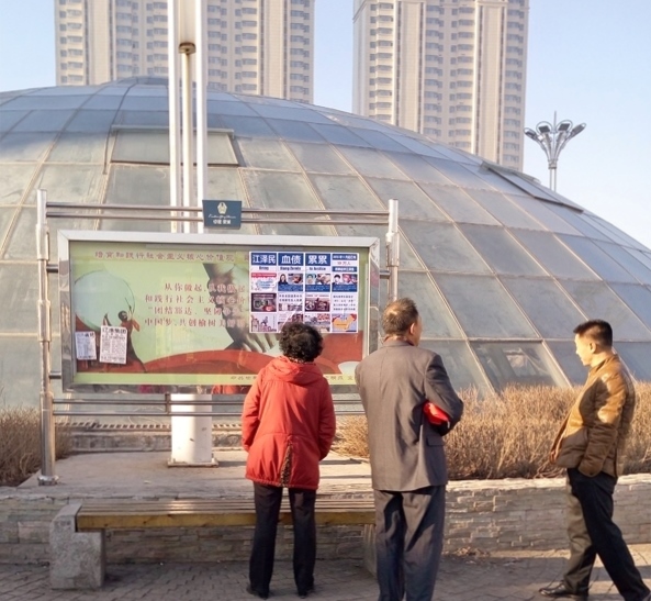 河北省张家口民众观看揭露中共迫害法轮功的真相展板