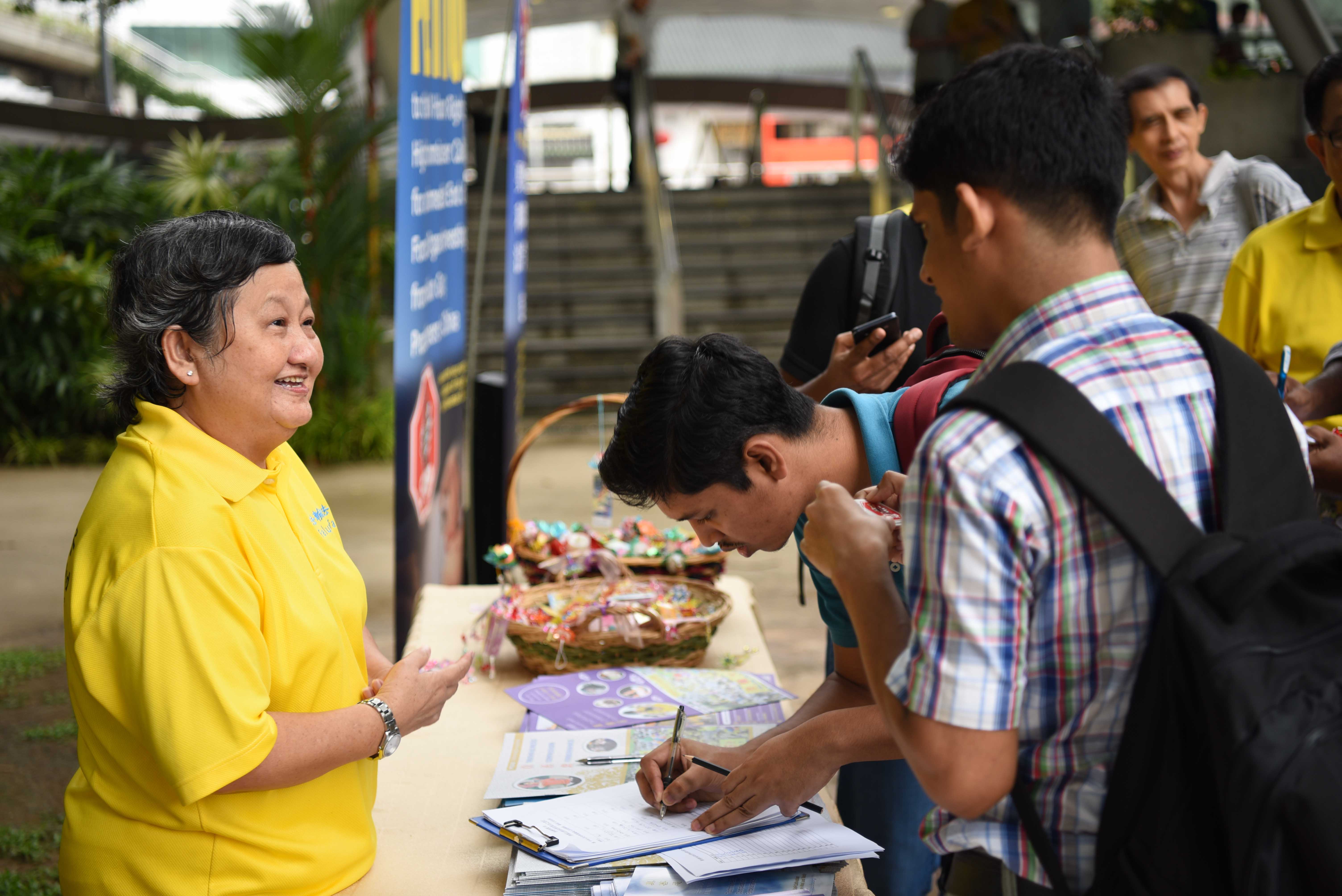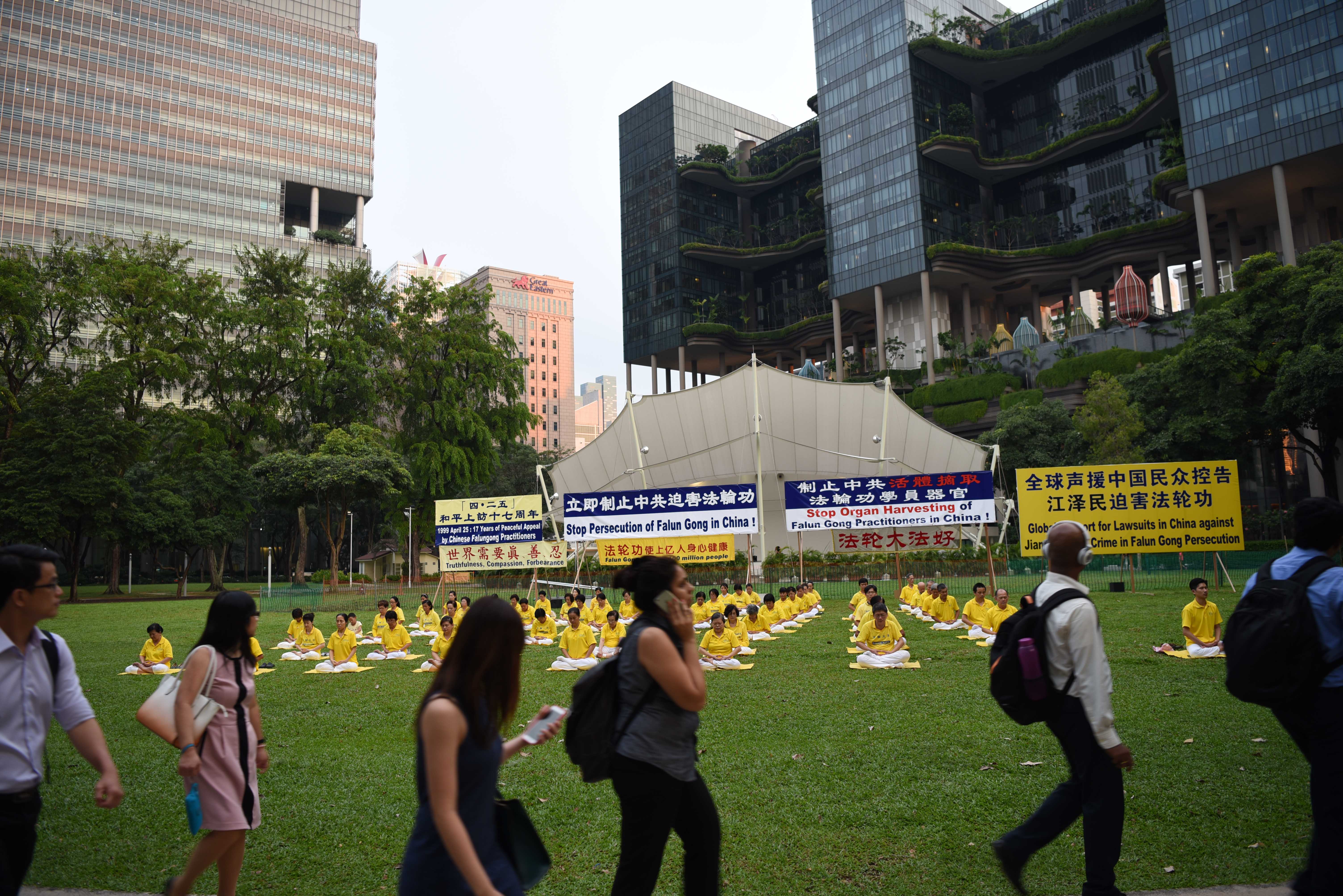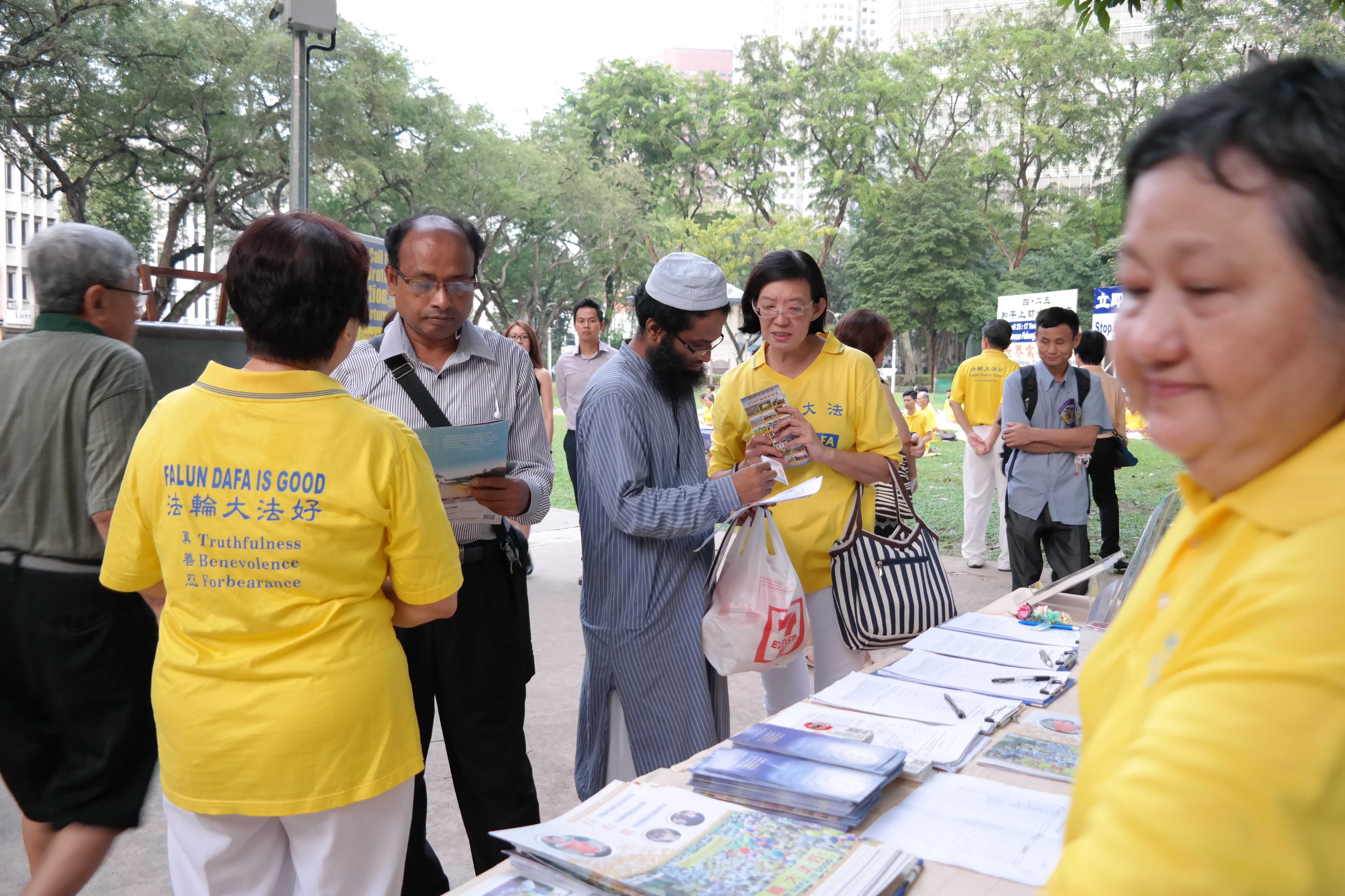![]() 图1-3:纪念四二五,新加坡法轮功学员在芳林公园举办活动,传播法轮功真相。 |