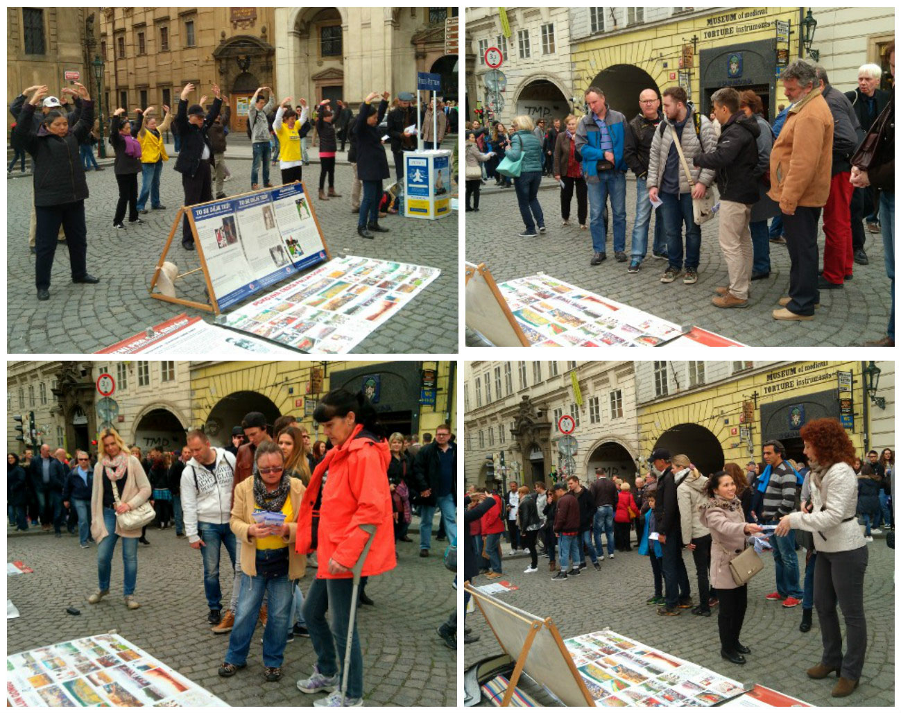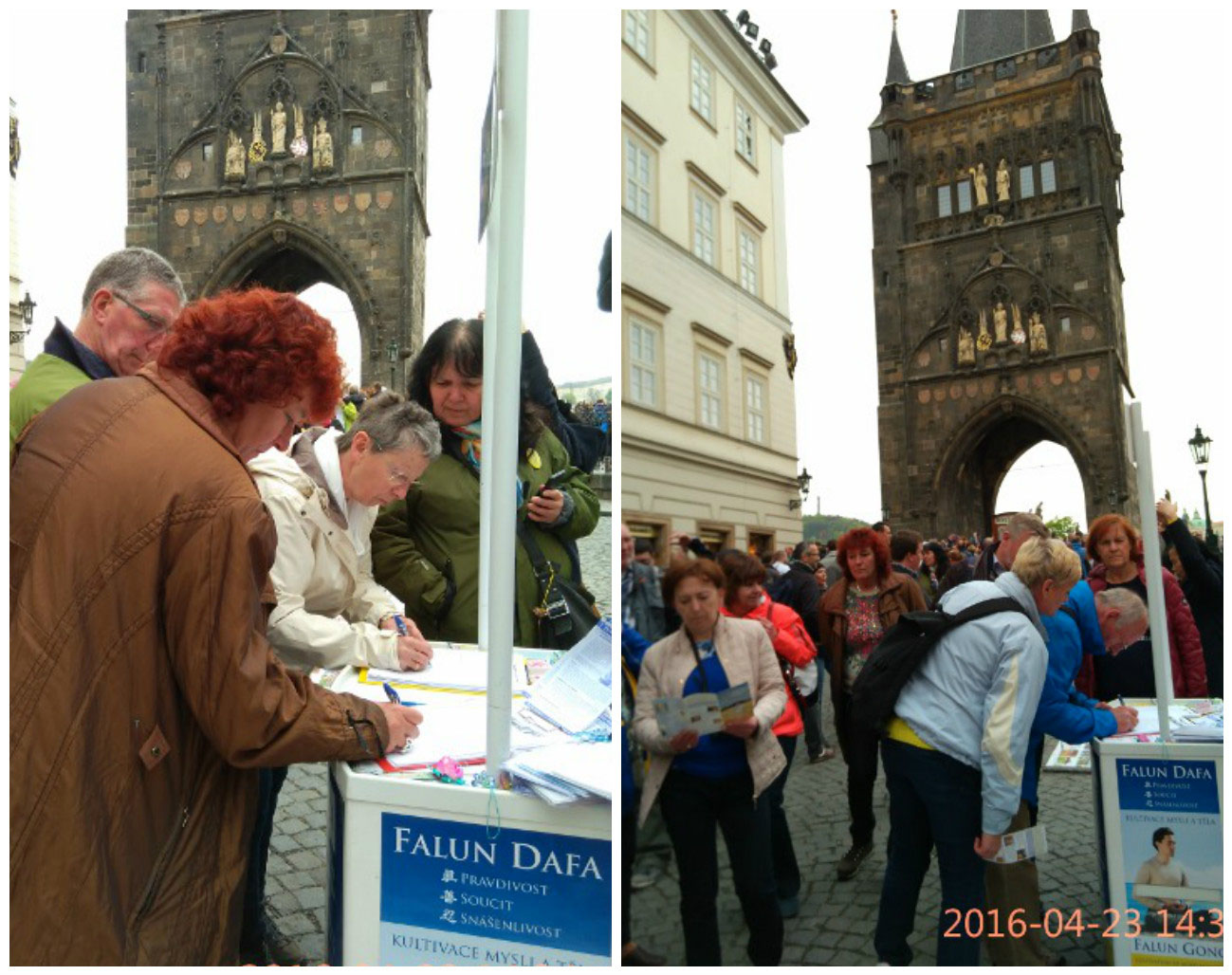 ![]() 纪念四二五,捷克部分法轮功学员在布拉格查理大桥旅游景点举办讲真相活动。吸引一批批游客了解真相。 |