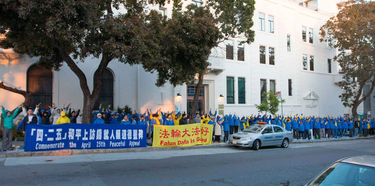 ![]() 法轮功学员在中领馆前纪念四二五 |