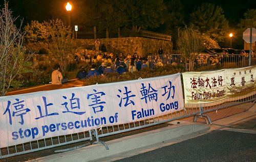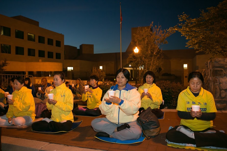 ![]() 图1-3:纪念四二五,二零一六年四月二十四日傍晚,美国首都华盛顿DC地区的部分法轮功学员在中共大使馆前举行集体炼功和烛光守夜,呼吁制止迫害,法办江泽民。 |