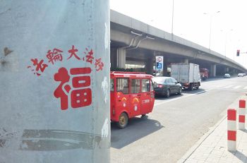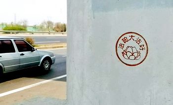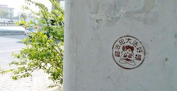 【明慧网二零一六年四月二十七日】天津,二零一六年的春天来的特别早,人们在感叹时间飞快的同时,也在惬意的感受着春风、春雨、树梢的嫩芽及悄悄长出的小草。人们还发现津城还出现了一处处配有天使、童子,莲花和大福字等图案的法轮大法真相标语。它们点缀在灯柱、桥墩、电线杆、墙壁上,给人赏心悦目的美感,也带给人们希望。