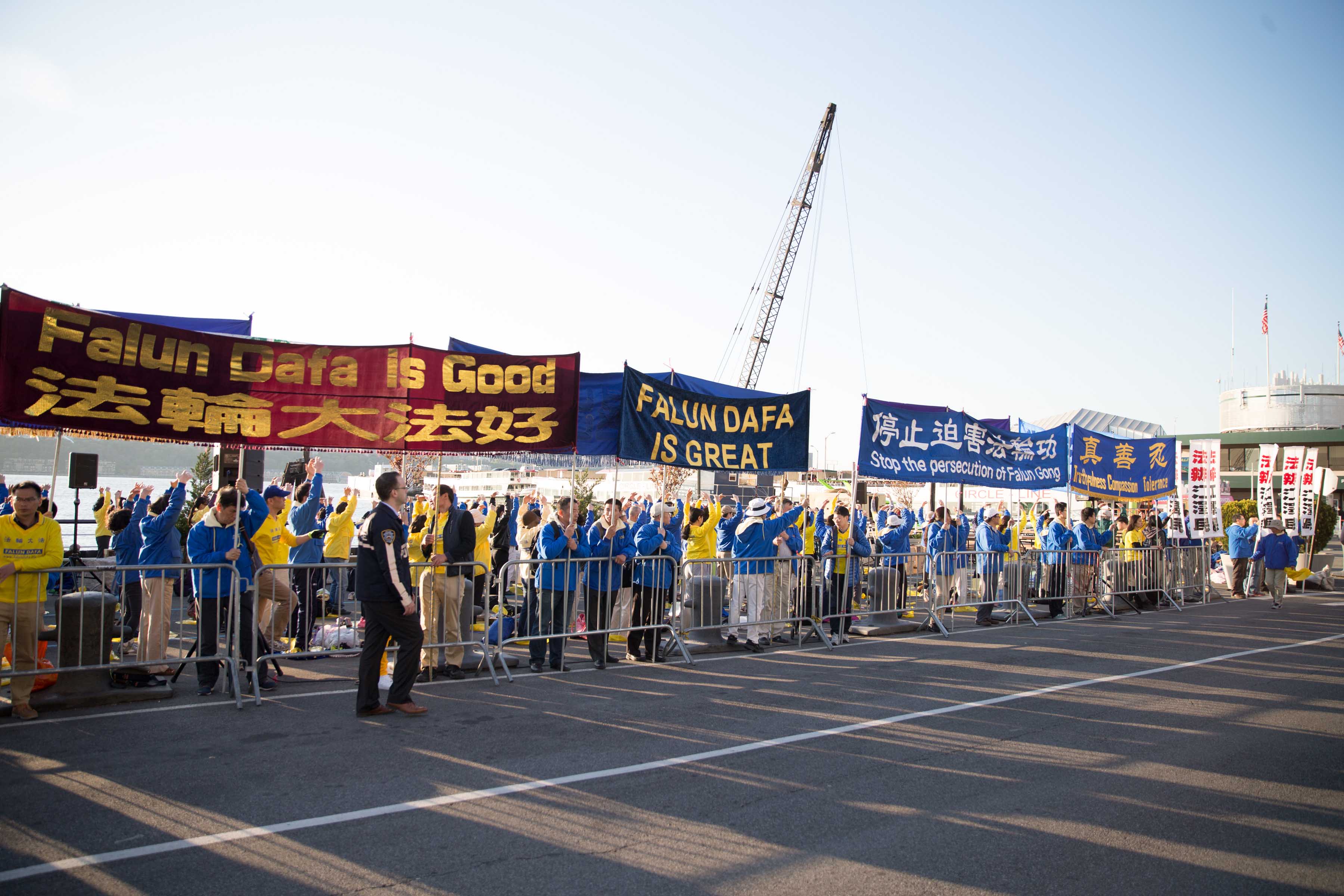 ![]() 图1-5:二零一六年四月二十四日傍晚,近千名法轮功学员来到纽约中领馆前集会,以集体炼功和烛光夜悼纪念“四二五和平上访”十七周年。 |