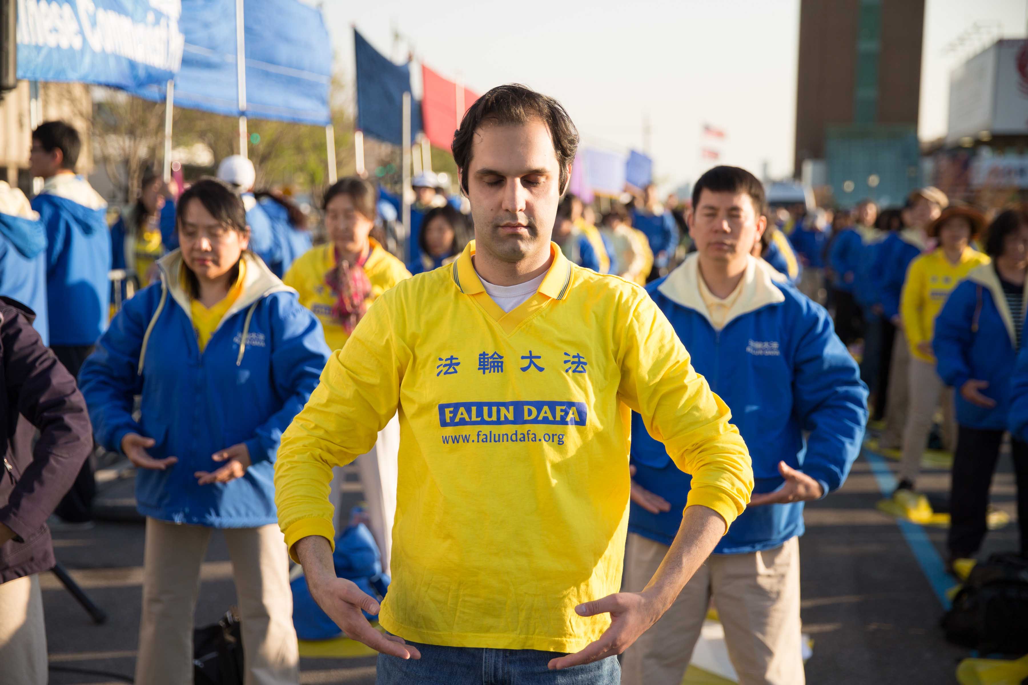 当天前来参加纪念四二五活动的学员除了华人学员外,还有很多西方学员。年轻、帅气的本(Ben)是其中一位。