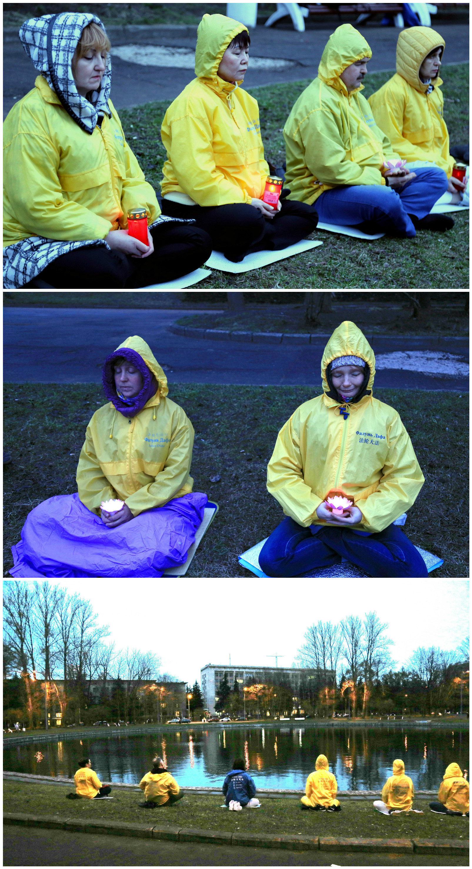 【明慧网二零一六年四月二十七日】二零一六年四月二十五日,莫斯科法轮功学员来到中领馆前举行了集体炼功,烛光守夜等活动,纪念四二五法轮功学员和平大上访十七周年。