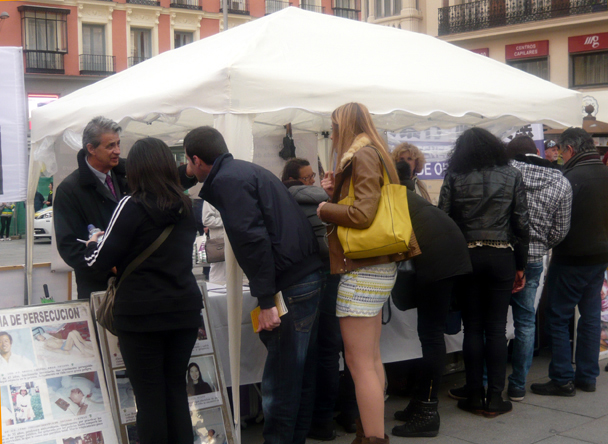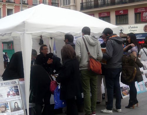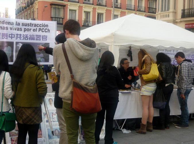 一位曾去过中国的西班牙女士路过,接过法轮功学员的真相传单并听法轮功学员介绍中共对法轮功学员的迫害后感到震惊。她说:“我去过中国很多地方,北京、上海、西安……从来没听说过这些事,这太不可思议了!迫害信仰,这是绝对不能够接受的。一定要制止迫害!”临走时,她问能不能多拿一些真相传单回去给她的同事和朋友,告诉他们中共迫害法轮功的真相。