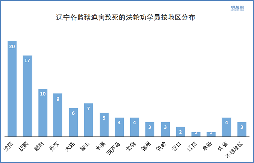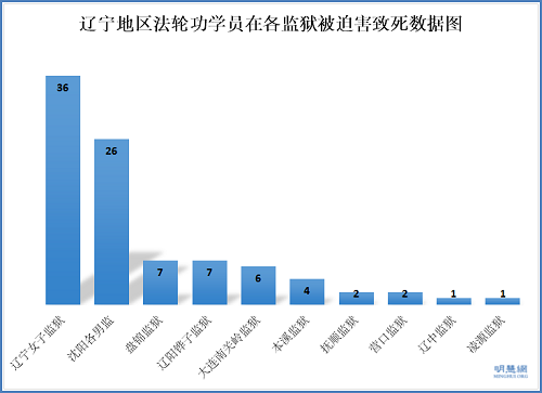 下面是辽宁省各监狱迫害致死人数示意图表: