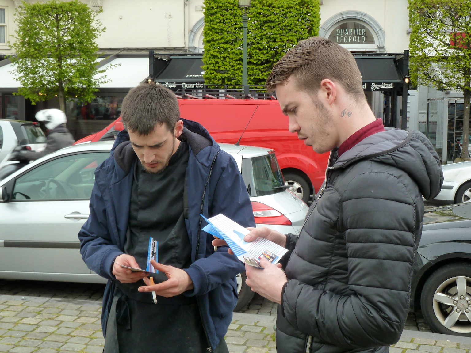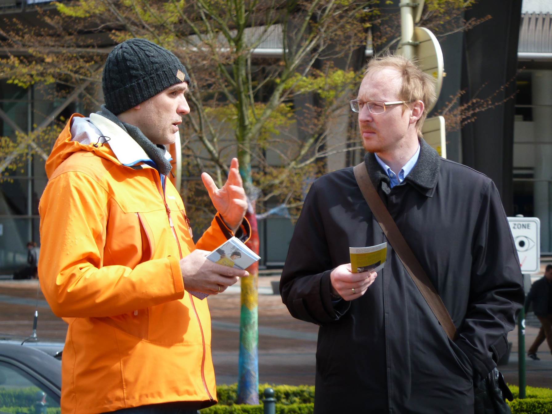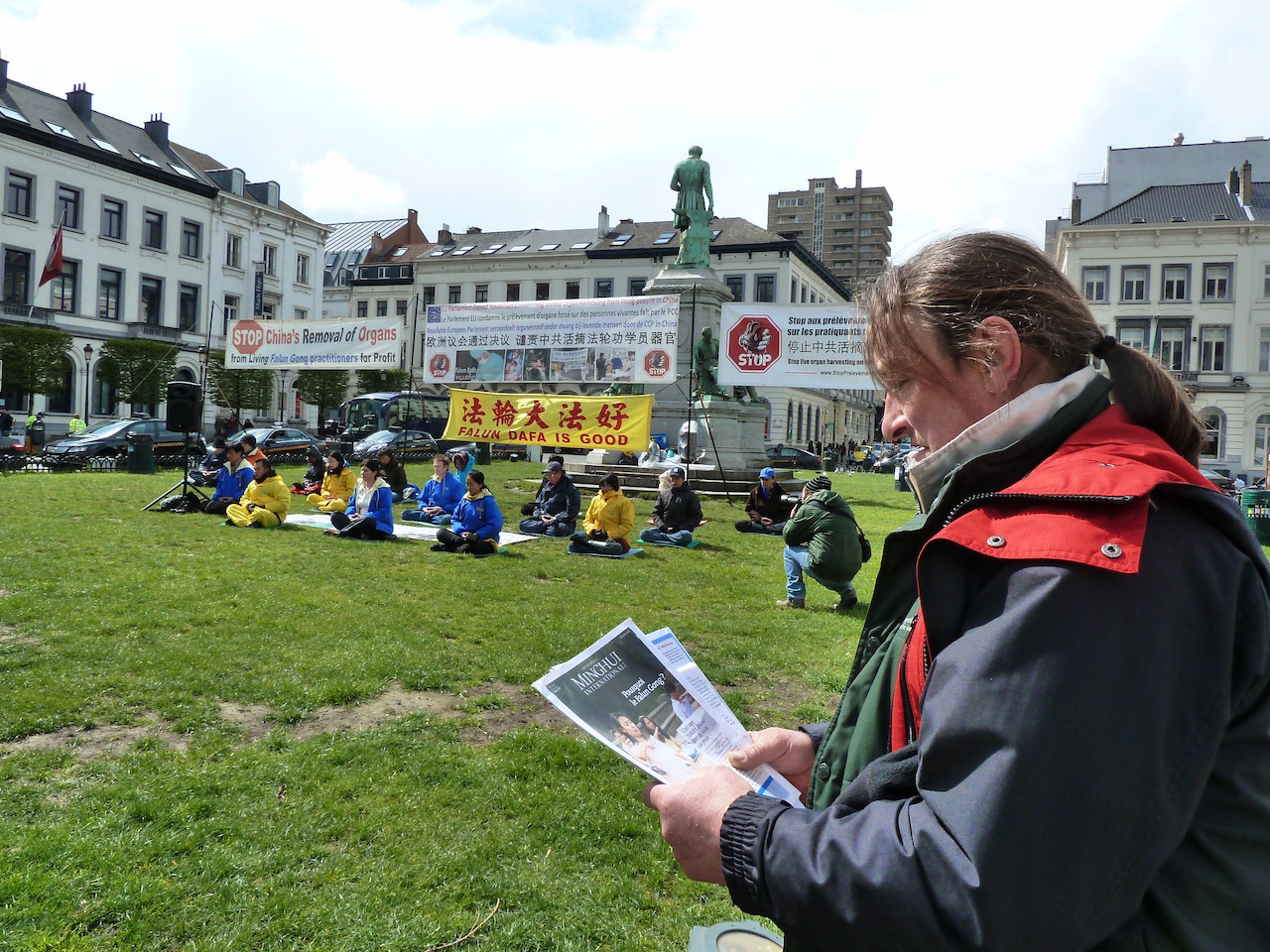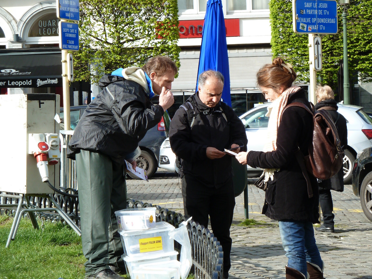 ![]() 图5-7:四月二十七日下午,法轮功学员来到欧洲议会大楼广场前,继续传播法轮功的真相,引起欧洲议会工作人员以及来此办事的各国人员的关注,不少人驻足了解真相。 |