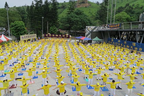 从早上开始,法轮功学员即在鳌峰山公园内布置了法轮功洪传世界的图片展,到公园内运动、游玩的民众,透过图片及学员的解说,更进一步了解法轮功。下午一点开始的庆祝活动,有舒缓的功法演示、振奋人心的鼓乐、精彩的舞蹈及可爱的小弟子表演,吸引民众驻足观赏。学员还准备了寿桃分赠在场民众,与大家分享喜悦。