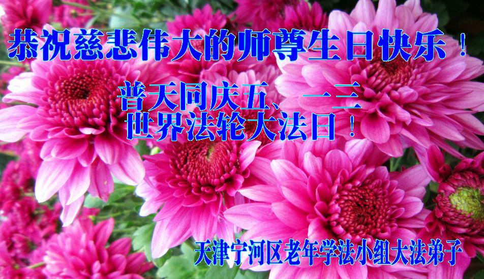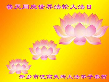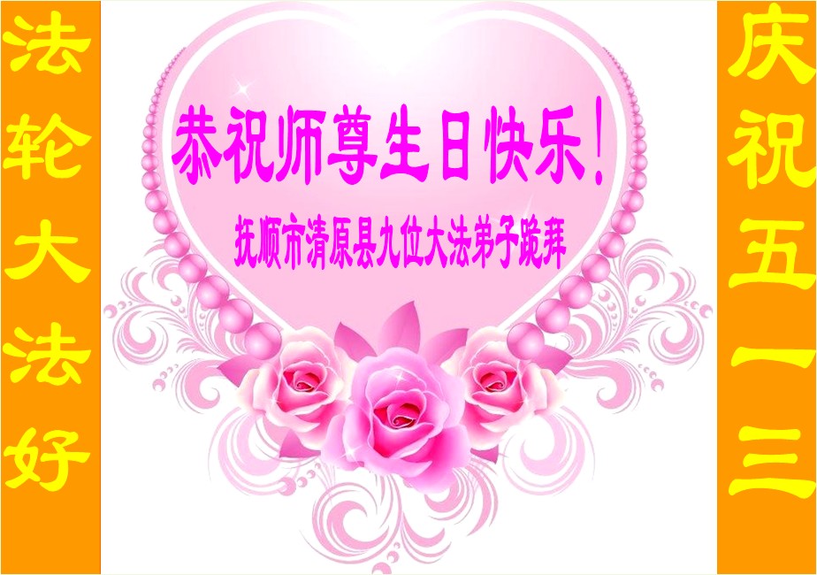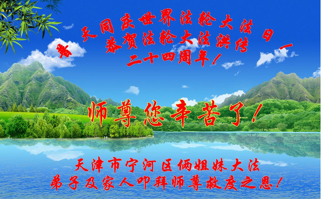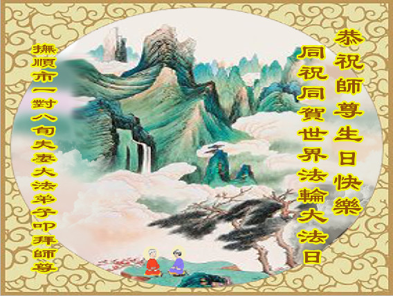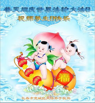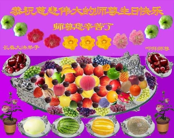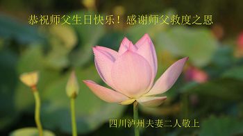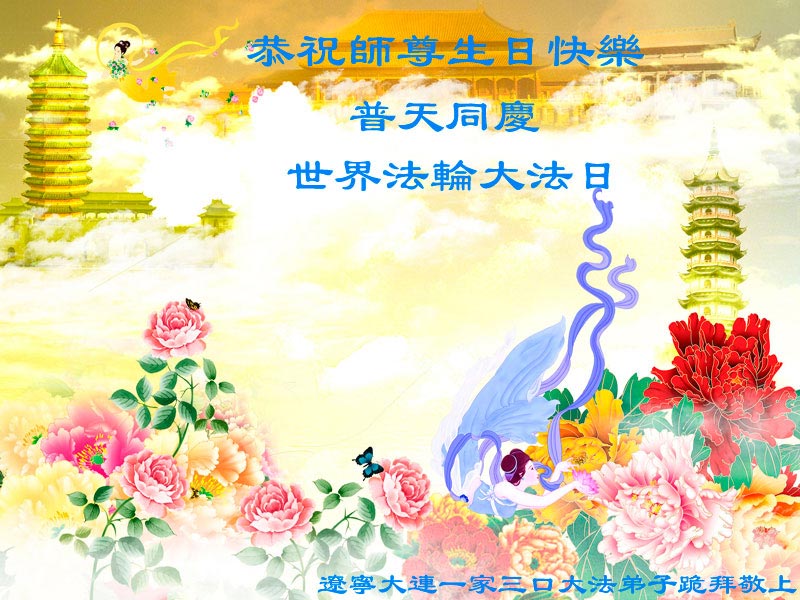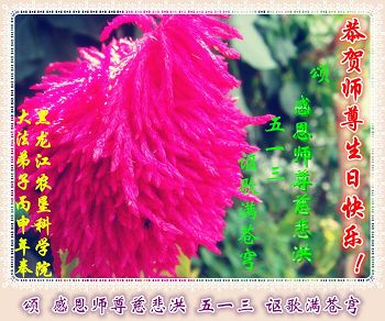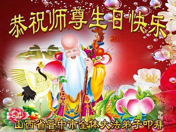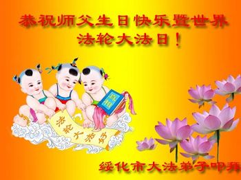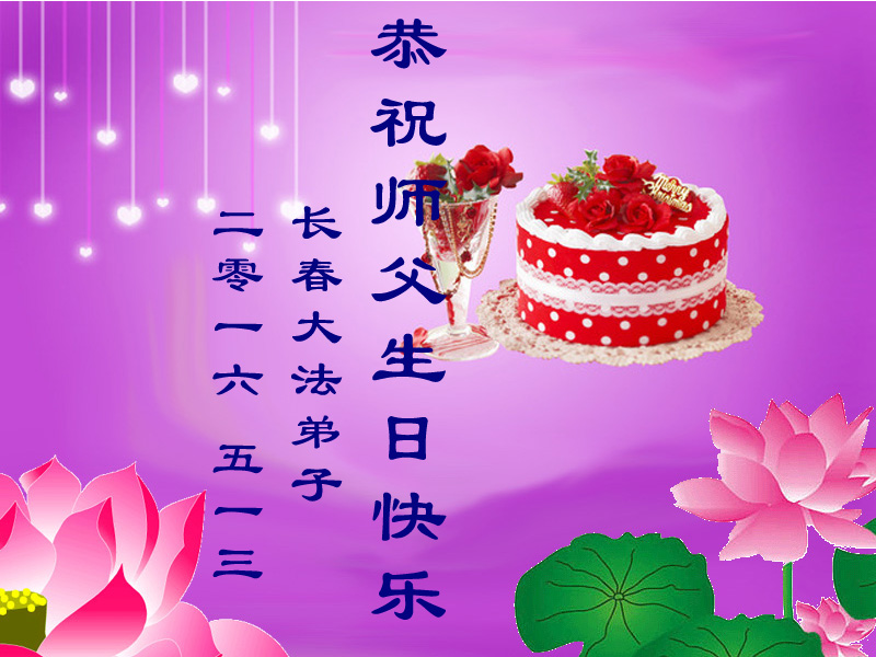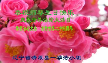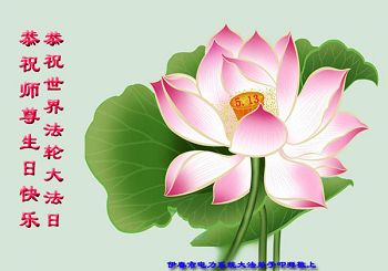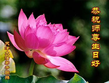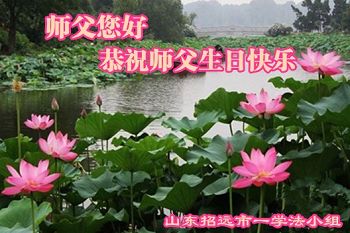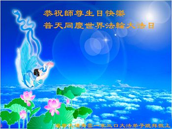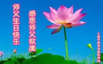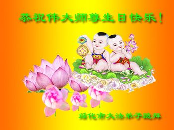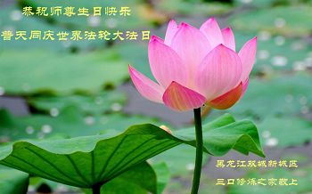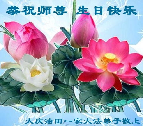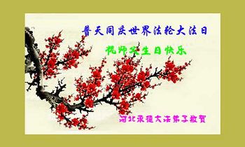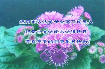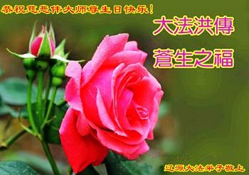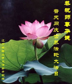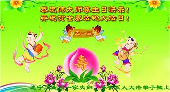 恭贺第十七届世界法轮大法日!恭祝李老师六十五华诞!祝李老师生日快乐!我们全家叩谢李老师赐予的福份!希望法轮功真相能尽快大白于天下,我们满怀喜悦迎接人类新纪元的到来!