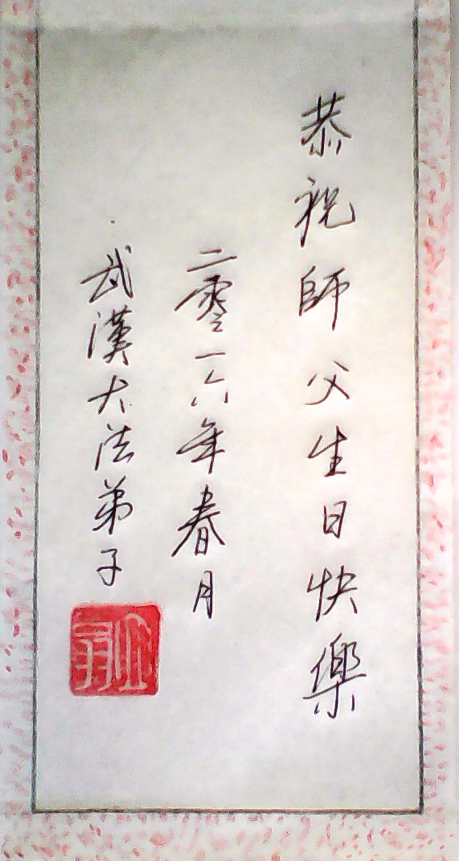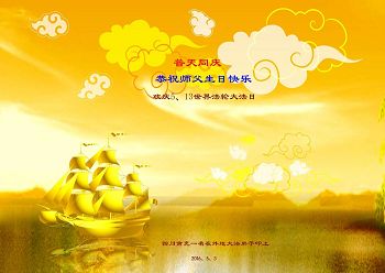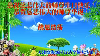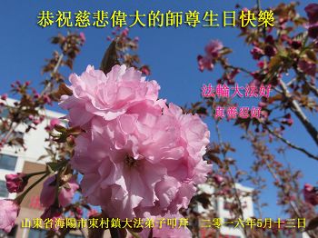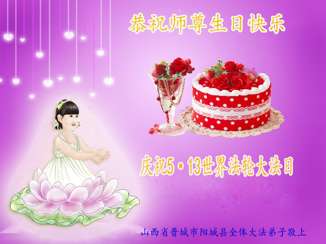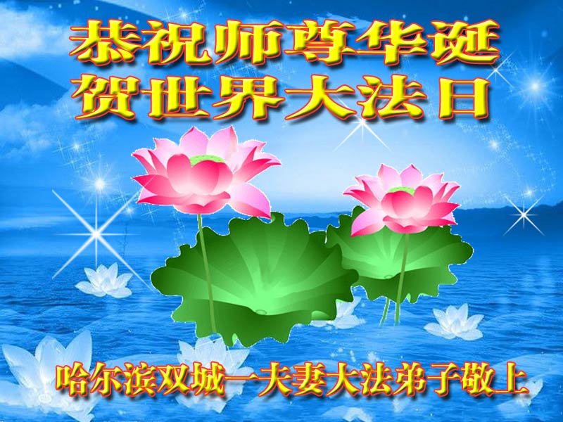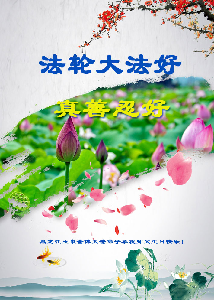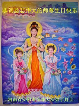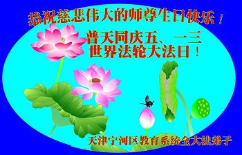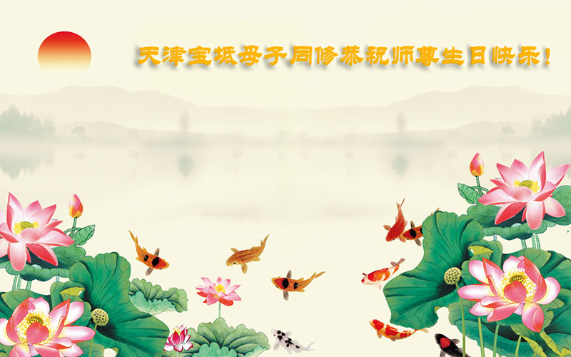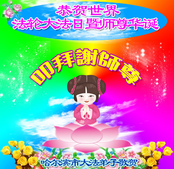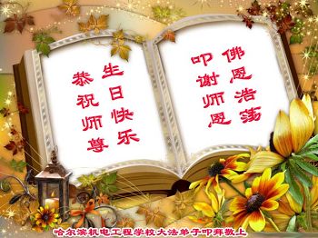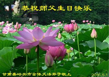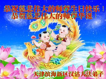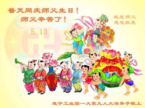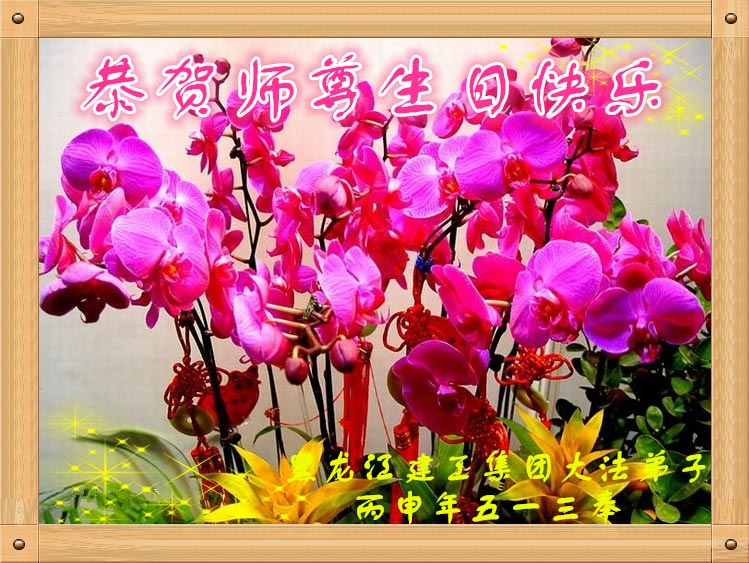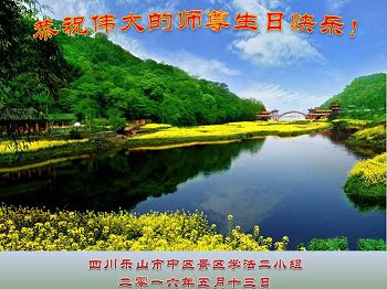 恭贺第十七届世界法轮大法日!恭祝李老师六十五华诞!祝李老师生日快乐!我们全家叩谢李老师赐予的福份!希望法轮功真相能尽快大白于天下,我们满怀喜悦迎接人类新纪元的到来!