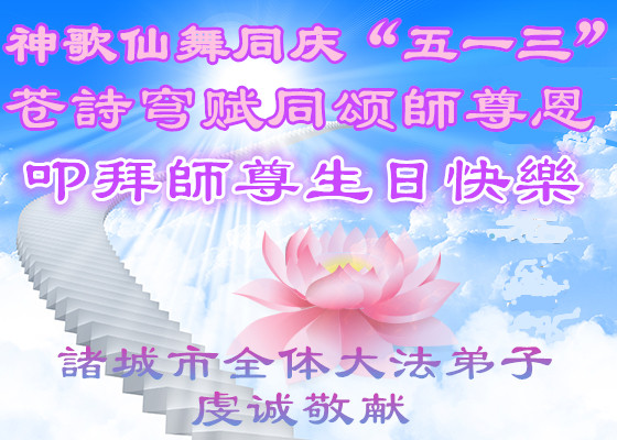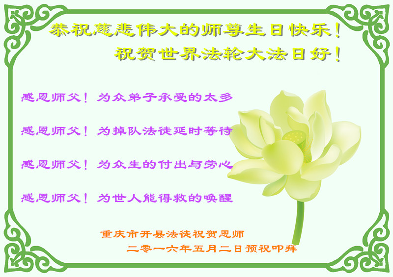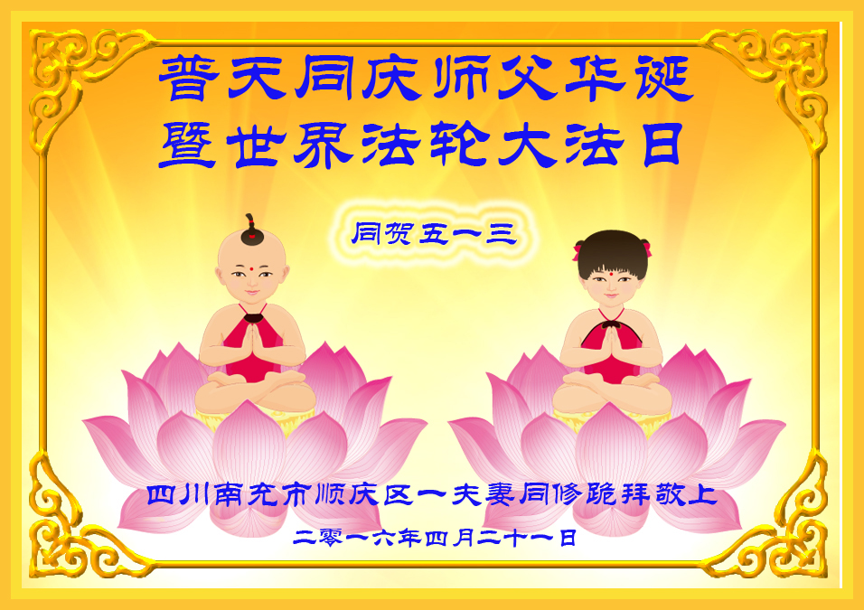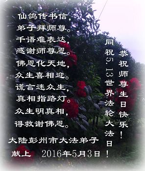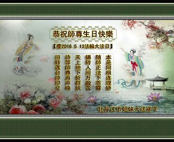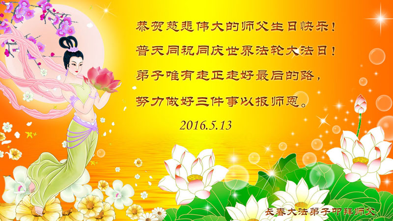<英文版: http://en.d2s3ombhnov3zf.cloudfront.net/html/articles/2016/5/11/156776.html>大陆百姓恭贺世界法轮大法日暨师尊华诞(11条)