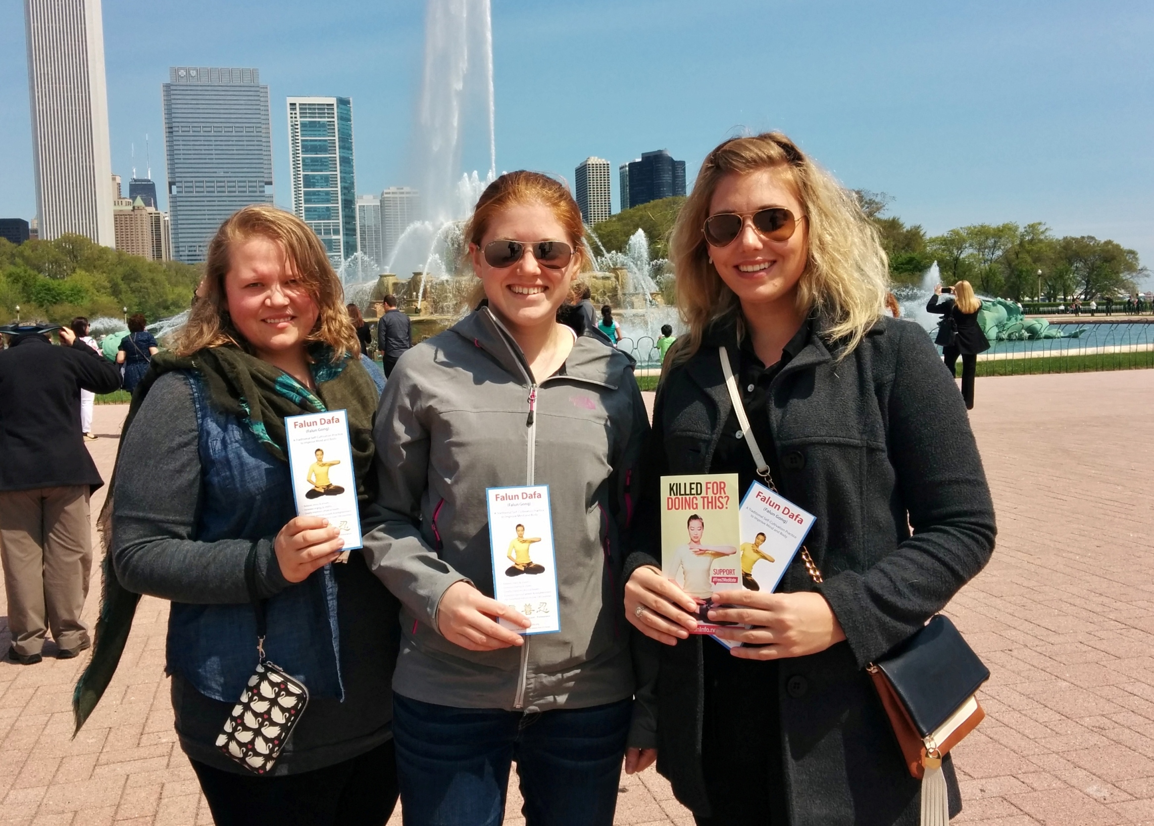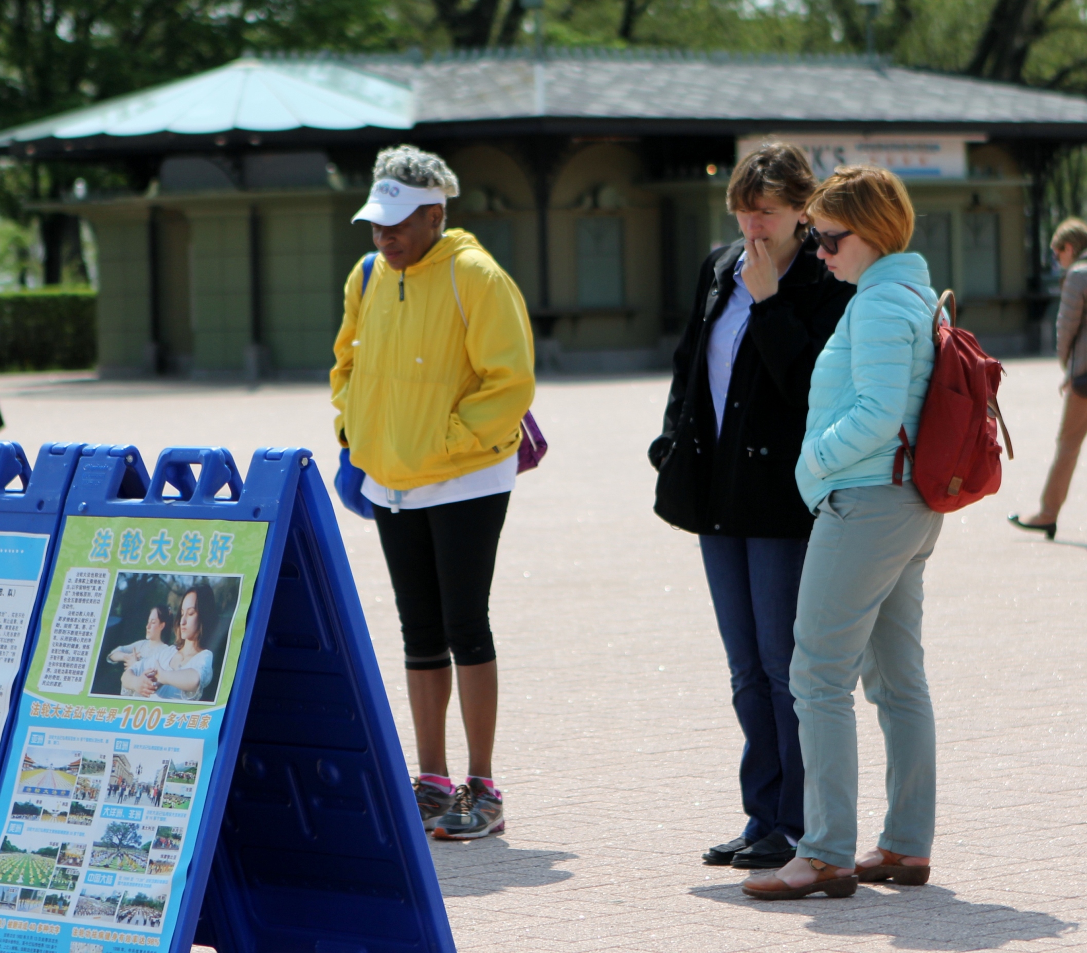 庆祝活动吸引了来自世界各地的游人驻足。不少过路者也兴趣盎然地观看,学习合十、结印、抱轮等炼功动作。也有游人与草坪上静坐炼功的人群“合影”留念。还有三位从上海来的游客在庆典现场当场化名退出了共产党、共青团与少先队。