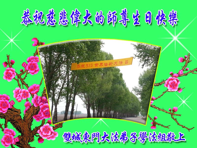 北京某空军大院及周边大法弟子恭祝师尊生日快乐!并热烈庆祝5.13世界法轮大法日!