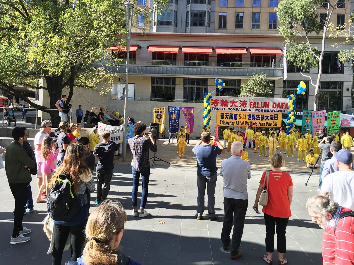 【明慧网二零一六年五月十一日】(明慧记者夏纯清墨尔本报道)二零一六年五月七日下午,墨尔本法轮功学员在位于市中心繁华商业街的城市广场(City Square),举行了隆重庆典,恭贺法轮大法创始人李洪志先生华诞、庆祝“五一三世界法轮大法日”暨法轮大法洪传世界二十四周年。