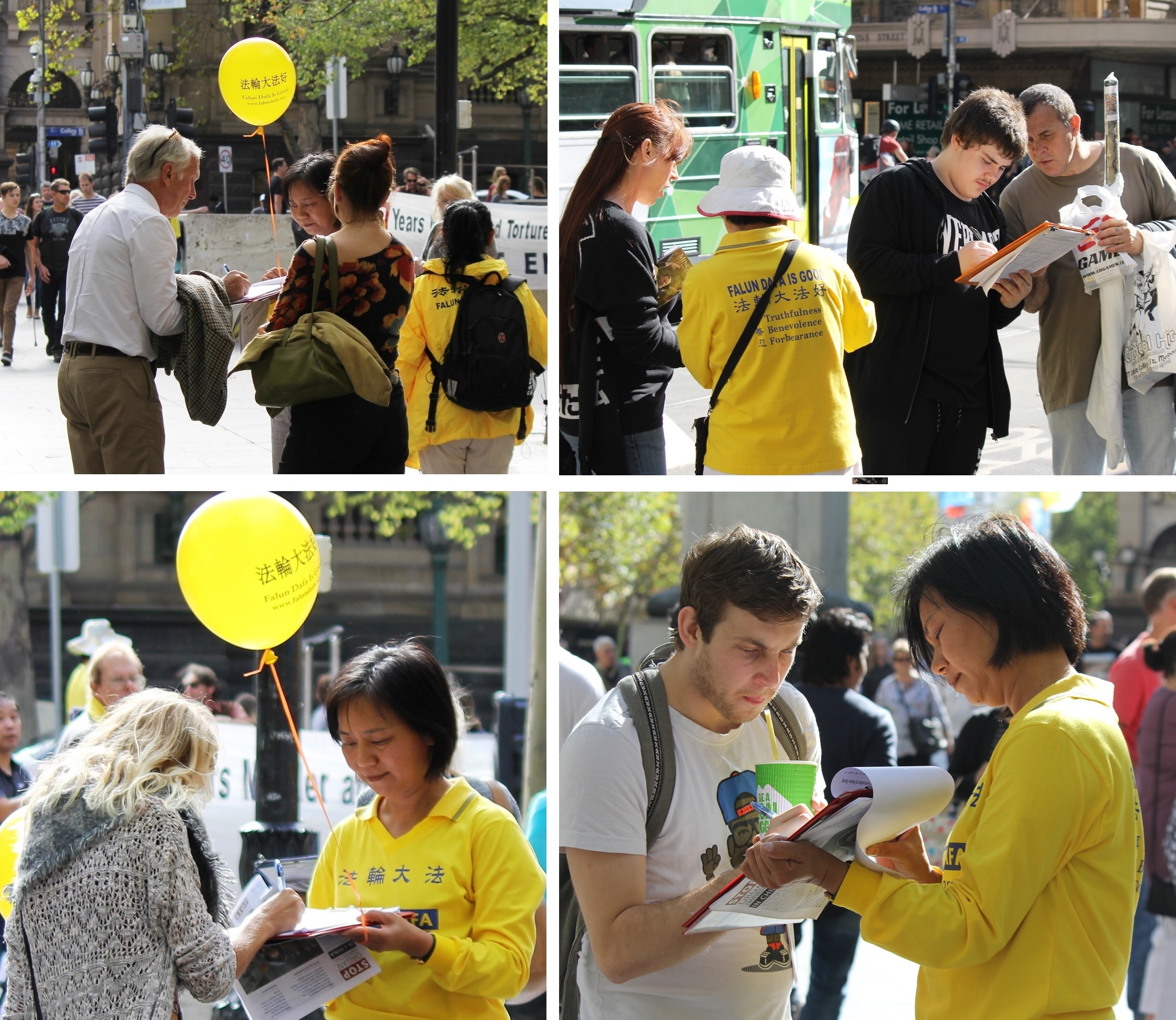 图1-2:二零一六年五月七日,墨尔本法轮功学员在城市广场庆祝世界法轮大法日,传播大法的美好。