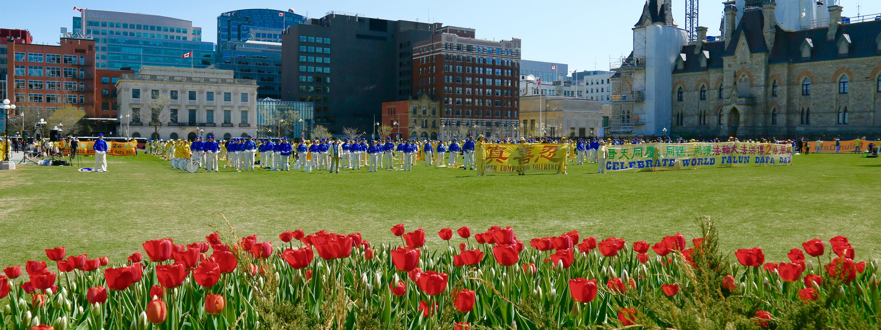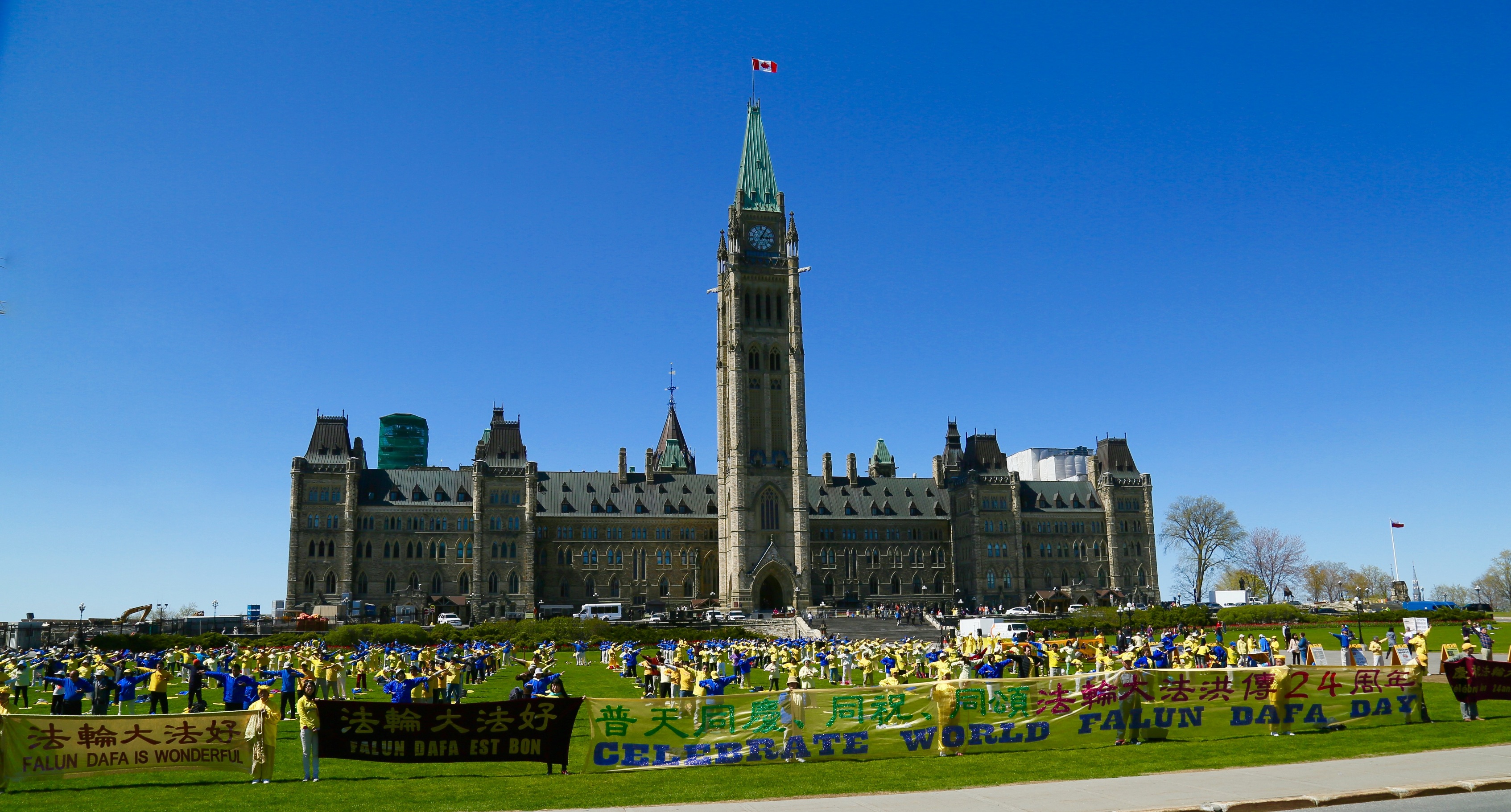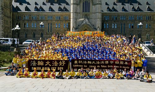 法轮大法日庆祝期间,加拿大多位部长、各级议员再度为法轮大法发出贺信和褒奖。十日,法轮功学员以天国乐团游行、歌舞和真相展的方式庆祝法轮大法弘传世界二十四周年。