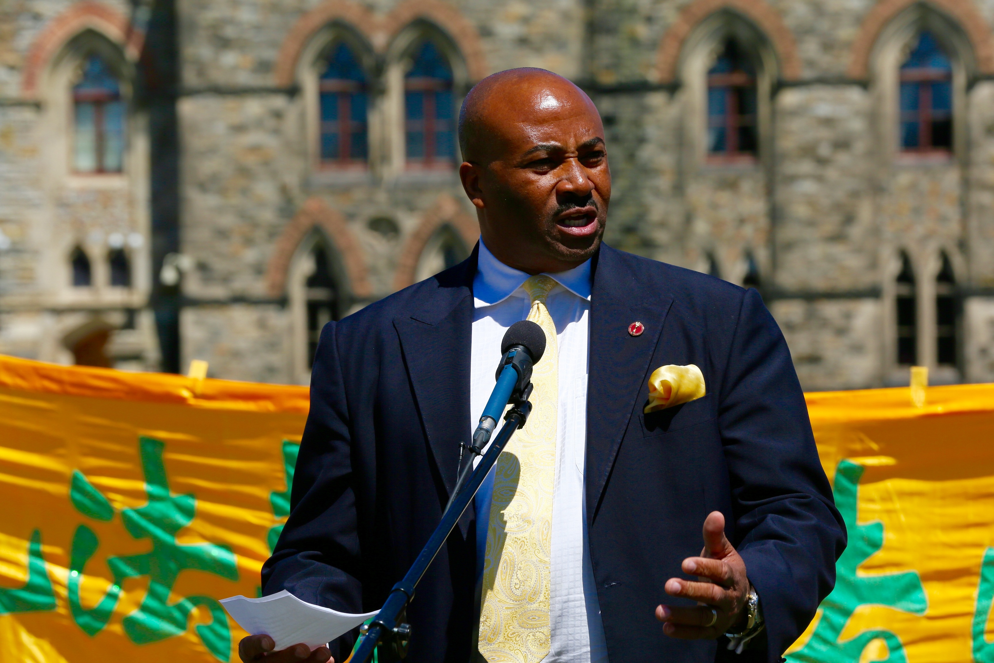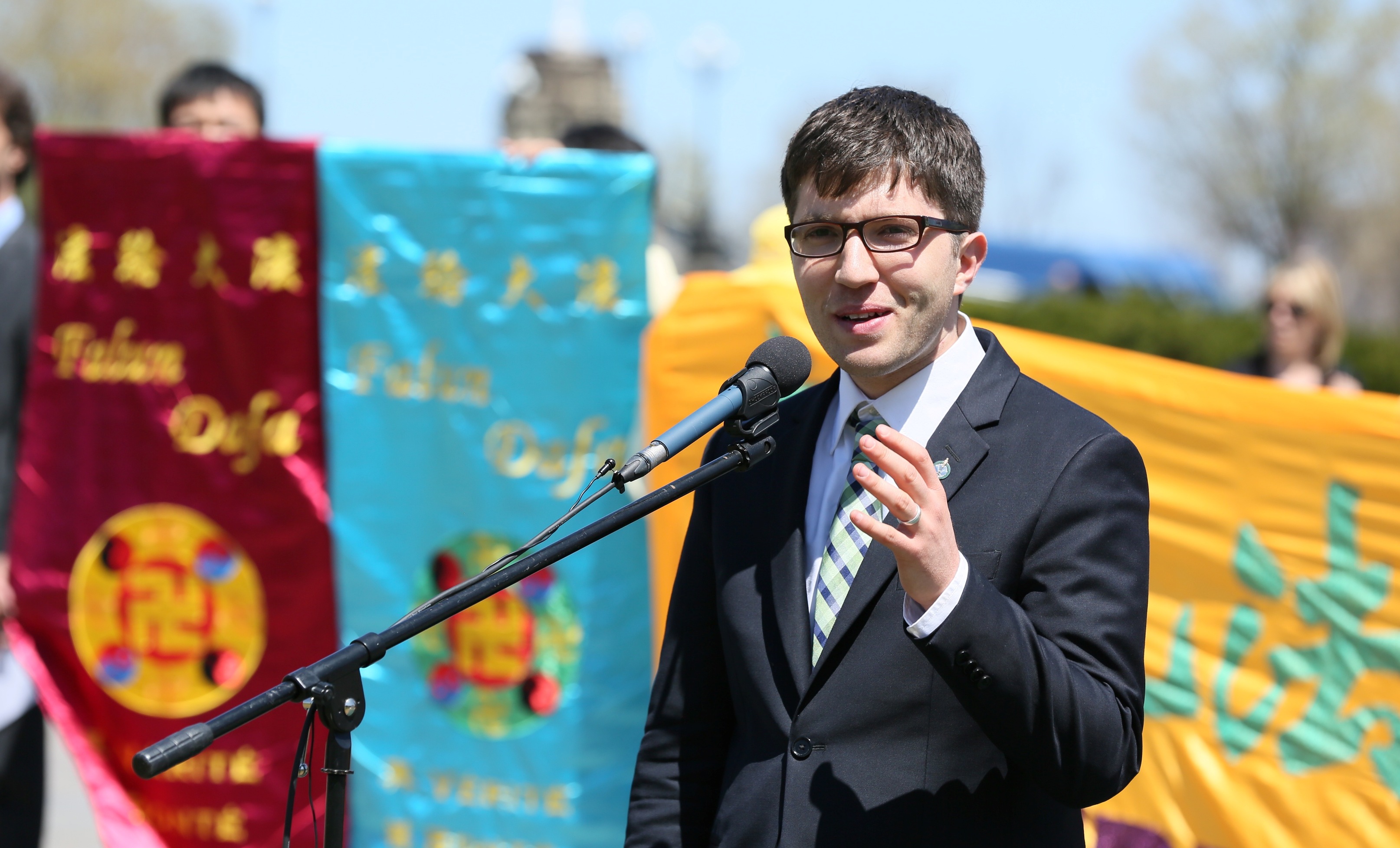 长期支持法轮功的斯格若议员在当天的发言中说:“我认为神在回答你们的祈望,我们在这个最美丽、最美好的一天,来到这里,坐在这里,基于我们国家的民主,积极表达自己的(诉求)。”