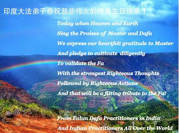 印度大法弟子恭祝慈悲伟大的师尊生日快乐!