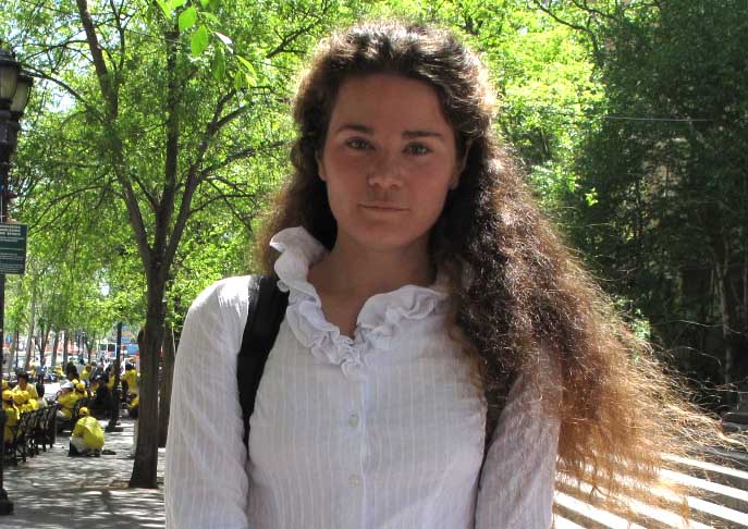 在巴黎学习从事摄影和设计的法国学员嘉尔乐(Gaelle)表示,自己前来参加纽约的这次活动,是想告诉世人法轮大法的美好。她觉得,有幸修炼大法并获益,自己有责任去帮助他人不错过看到法轮大法的机缘。