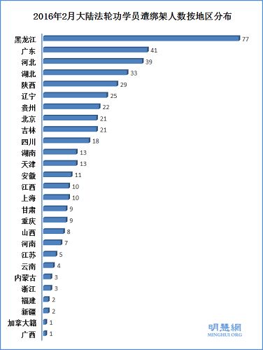 迫害最严重的省份:山东绑架79人、黑龙江绑架56人、广东绑架37、河北绑架31人、辽宁绑架22人。