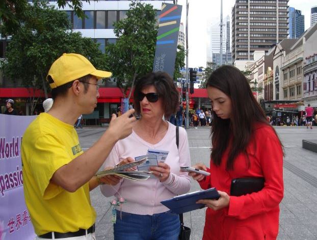 ![]() 图2-3:昆士兰民众驻足了解法轮功真相 |