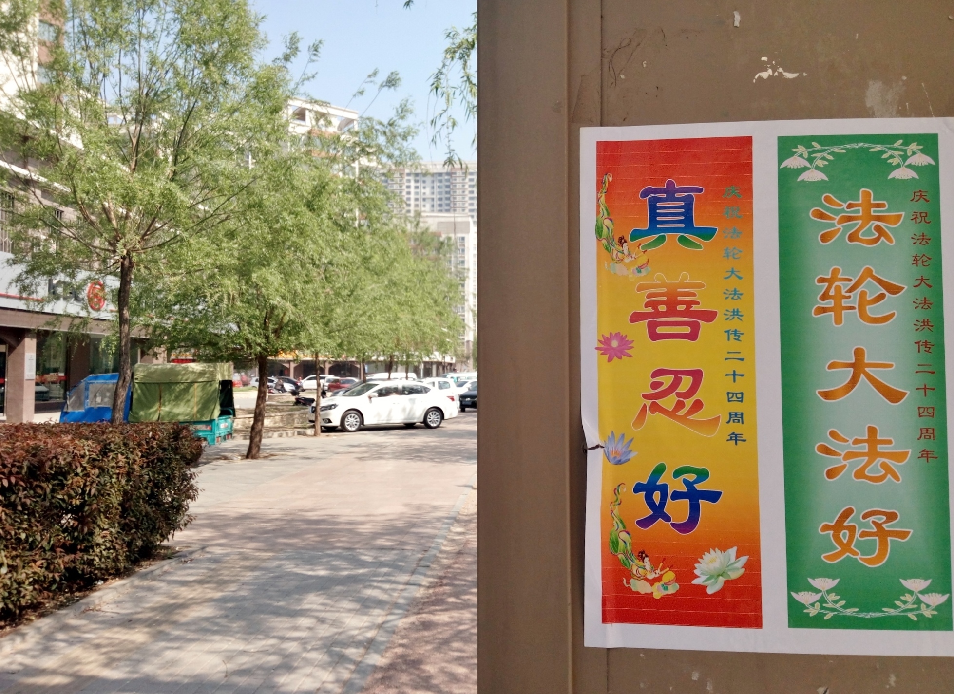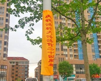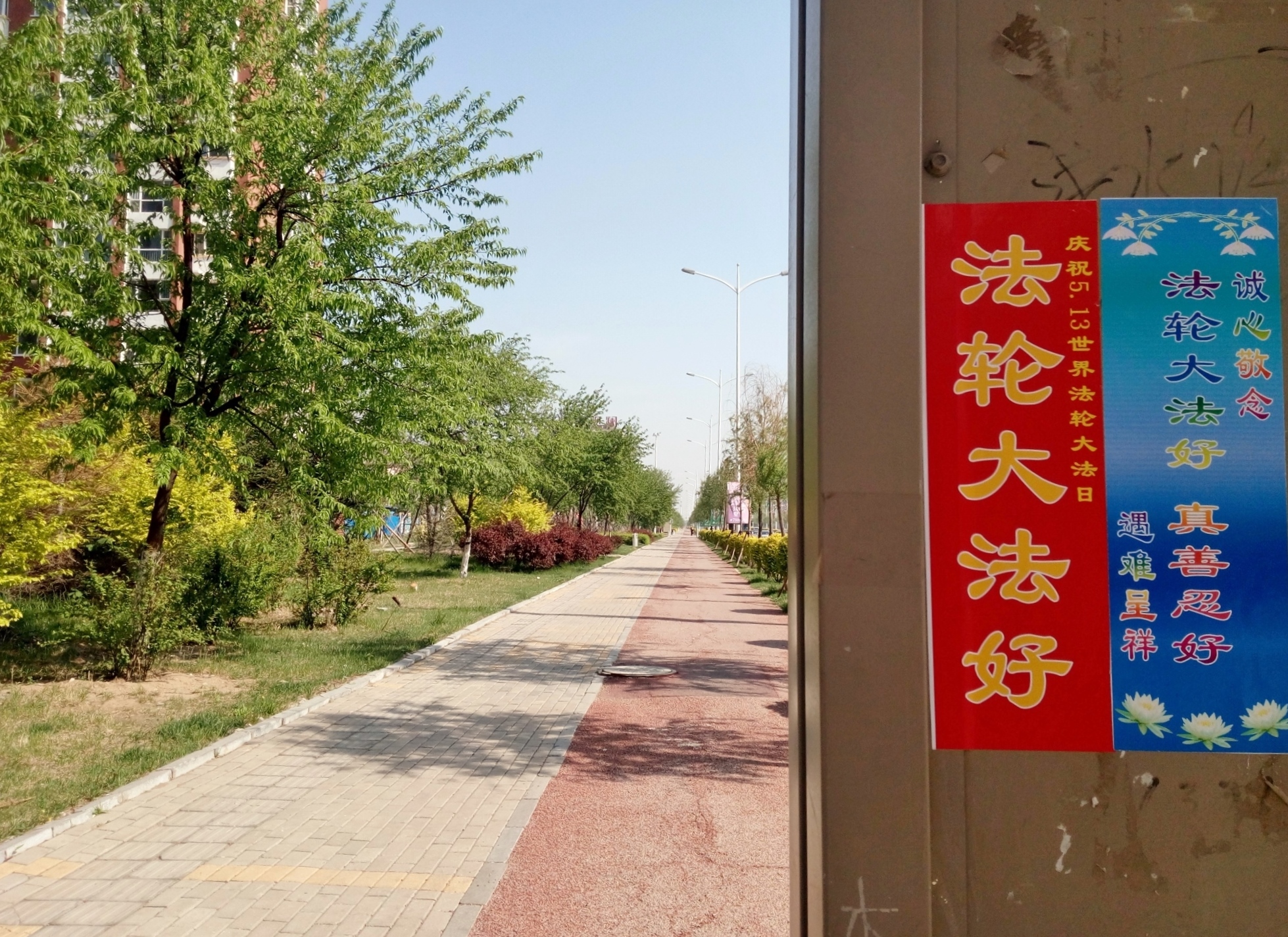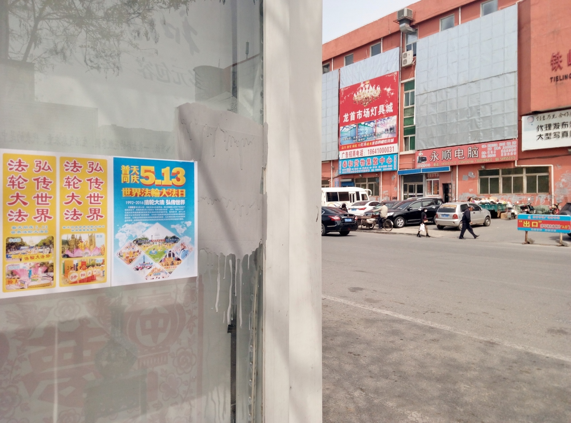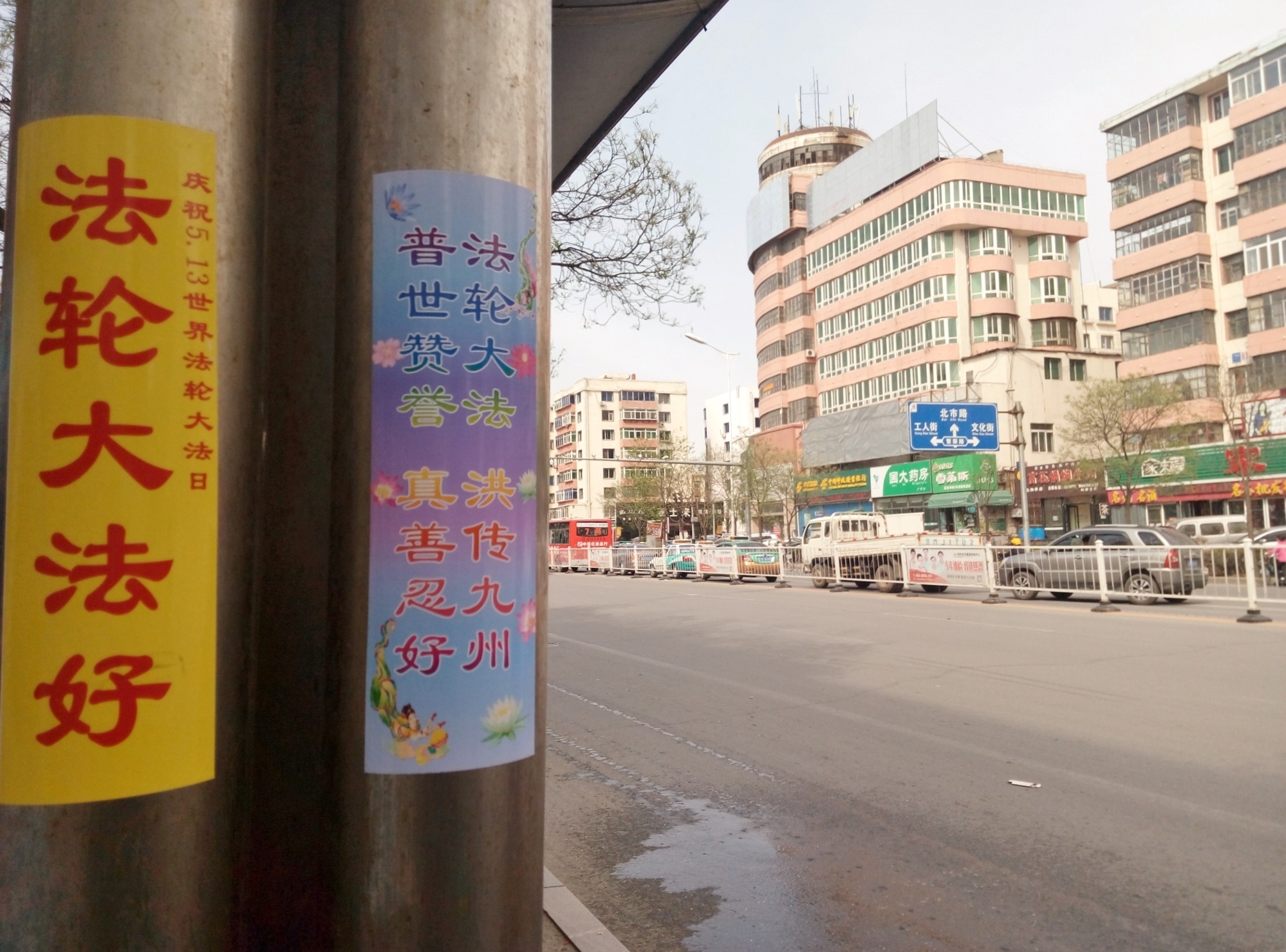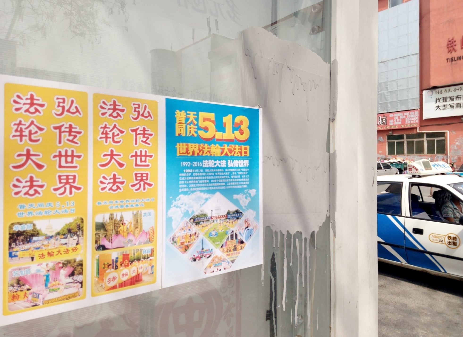 二零一六年五月,在铁岭商业中心、主要街道和铁岭新区,都可看到“普天同庆世界法轮大法日”、“法轮大法好”、“真善忍好”、“法轮大法洪传世界”等真相粘贴。
