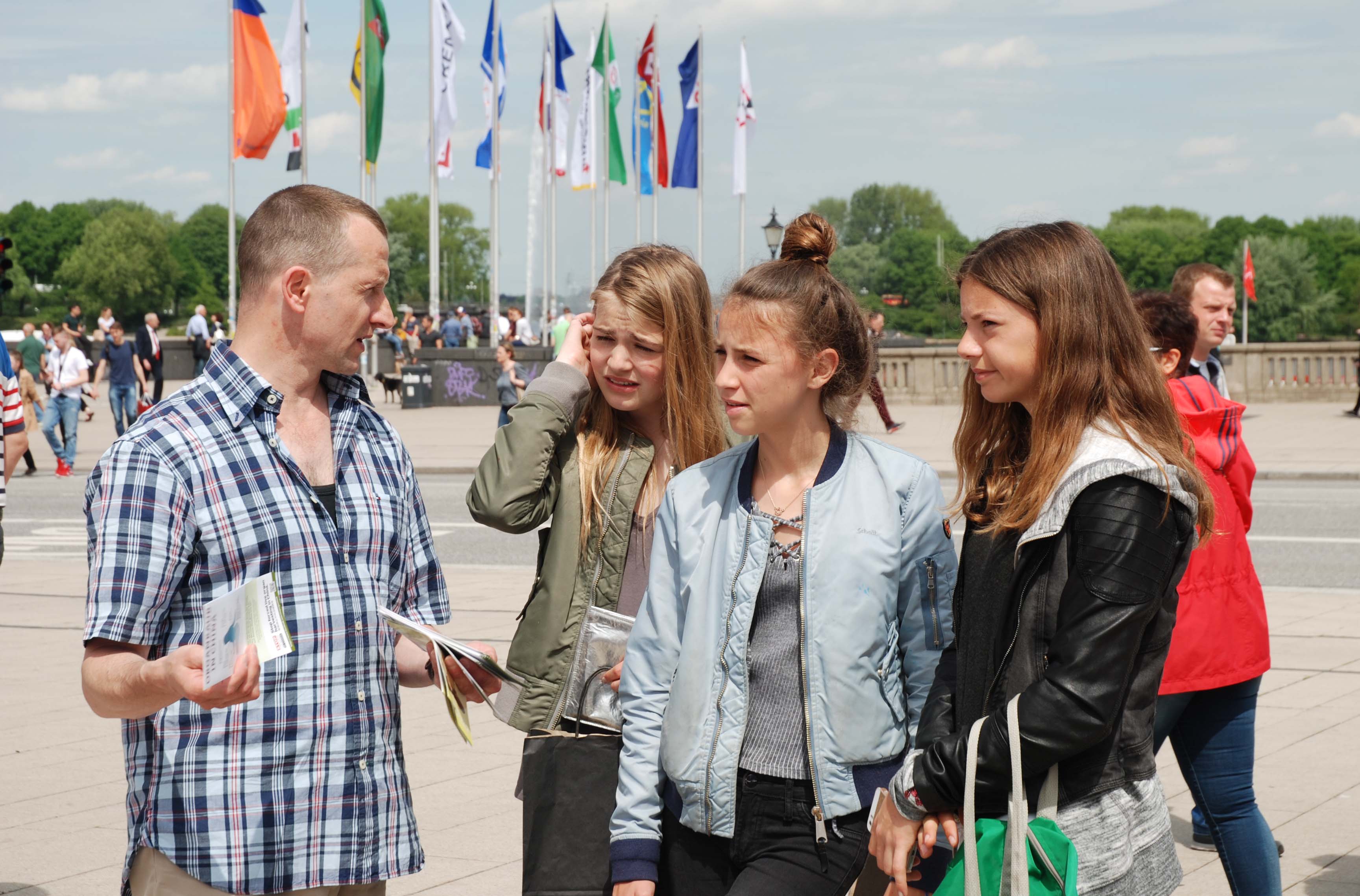 一对来自英国,在汉堡工作的年轻人Jack和Amily带刚到汉堡的朋友来看闻名欧洲的Alster湖,看见在展桌后的女学员正是自己的同事,惊讶地说:“呀,那不是某某吗?”一跃而上给那位女学员一个大大的拥抱。虽然这对年轻人之前已从这位女同事那儿听说过中共残酷迫害法轮功的事,但是今天这个模拟手术台和详细的图片介绍还是让这对年轻恋人震惊。他们听说在汉堡法轮功学员叶晓君的母亲叶菊兰女士还在被关押时,在呼吁立即释放叶菊兰的征签表上签了名。