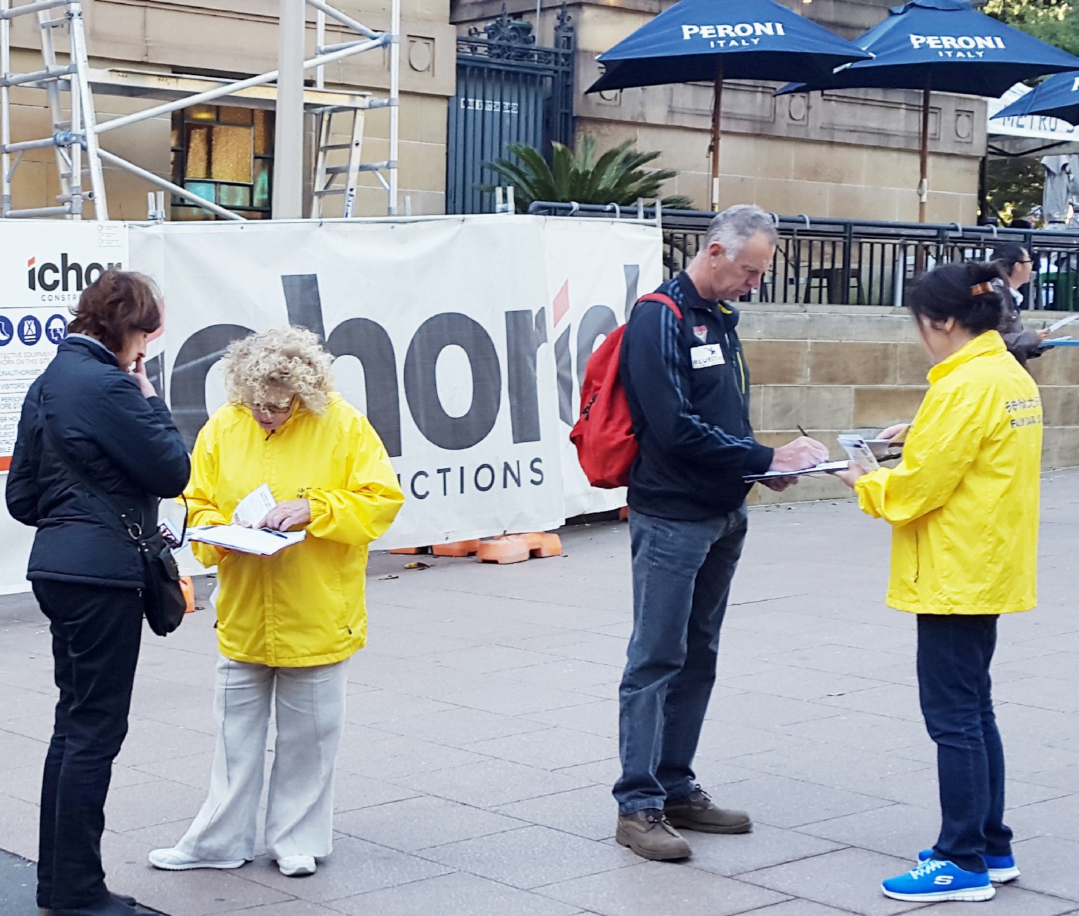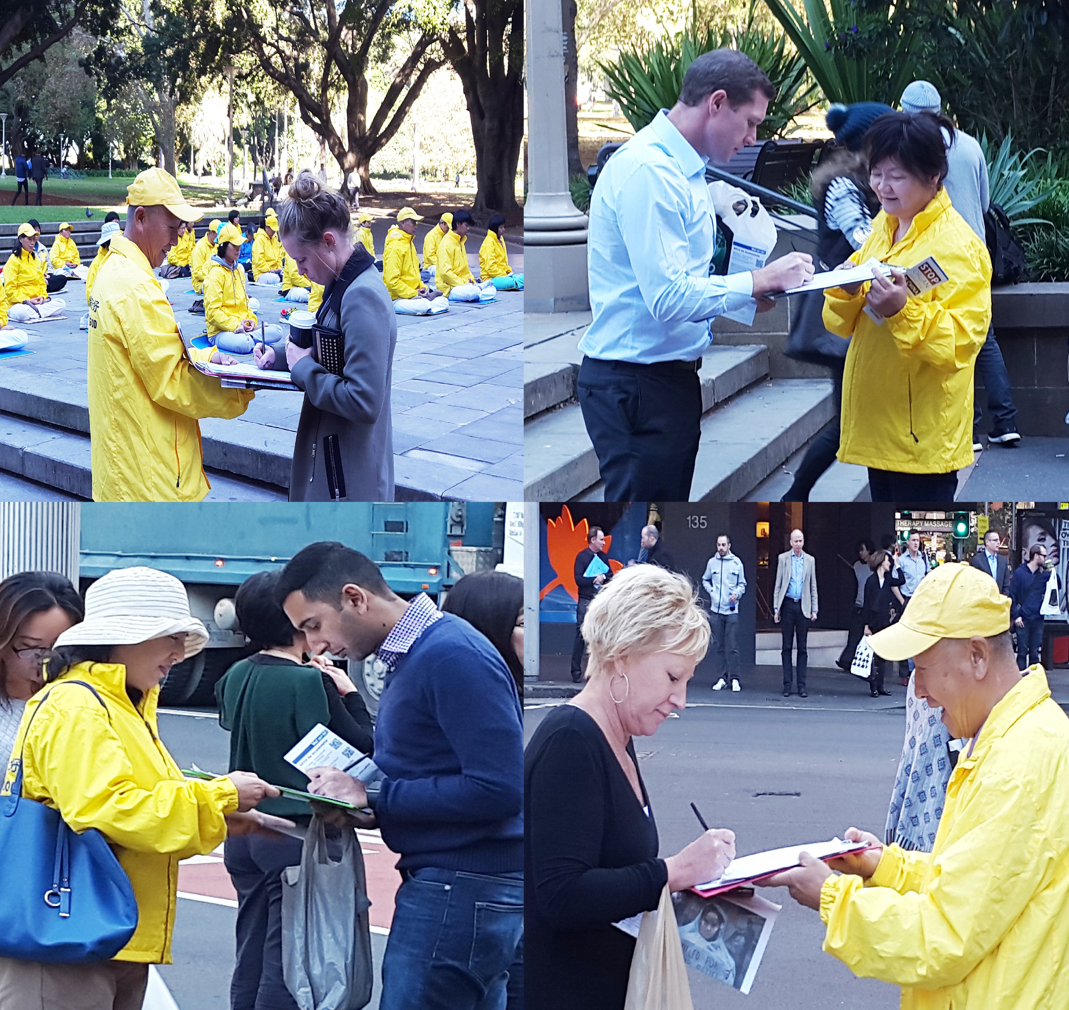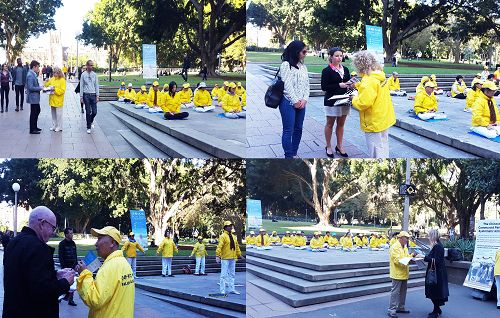 【明慧网二零一六年五月二十八日】(明慧记者华清悉尼报道)二零一六年五月二十六日和二十七日,法轮功学员在澳洲悉尼市中心最繁华的商业区海德公园(Hyde Park)举办活动,介绍功法,并揭露中共对法轮功的残酷迫害。当地民众纷纷驻足了解详情,并签名声援反迫害。