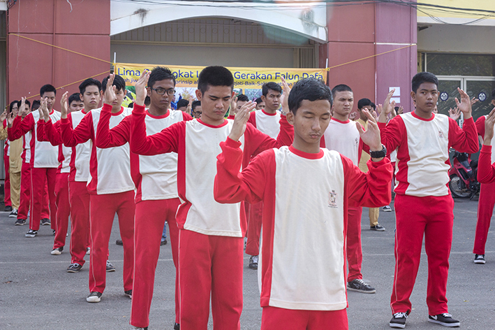 参加集体晨炼,师生们都各有美好感受。学校校长恩坚苏黑丁先生体验到大法的神奇,他说,刚开始炼法轮大法第二套功法——法轮桩法时,感到头晕目眩,但很快他的身体就感到前所未有的轻松。