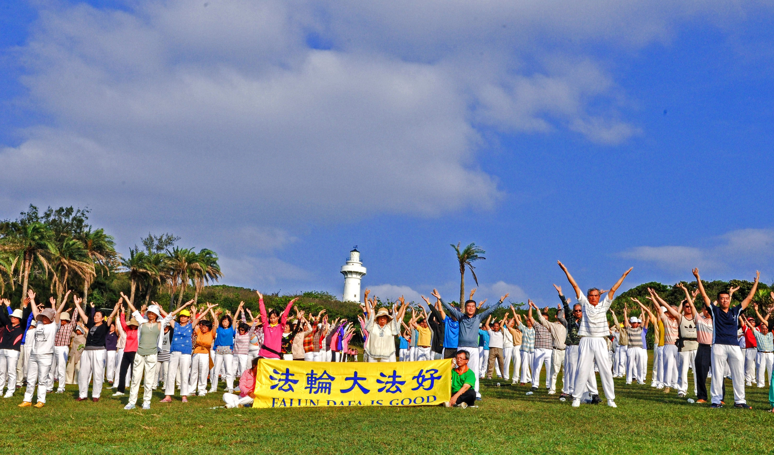 ![]() 图2:南台湾部分法轮功学员于台湾最南端之一鹅銮鼻灯塔前炼功弘法庆祝“五一三”世界法轮大法日。 |