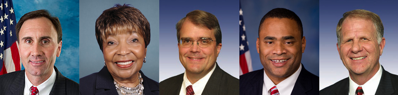 五名来自德克萨斯州的美国国会议员祝贺世界法轮大法日 (左起:美国国会议员彼得·欧森、艾迪·伯尼斯·强生、约翰·考伯逊、马克·维西和泰德·鲍尔) |