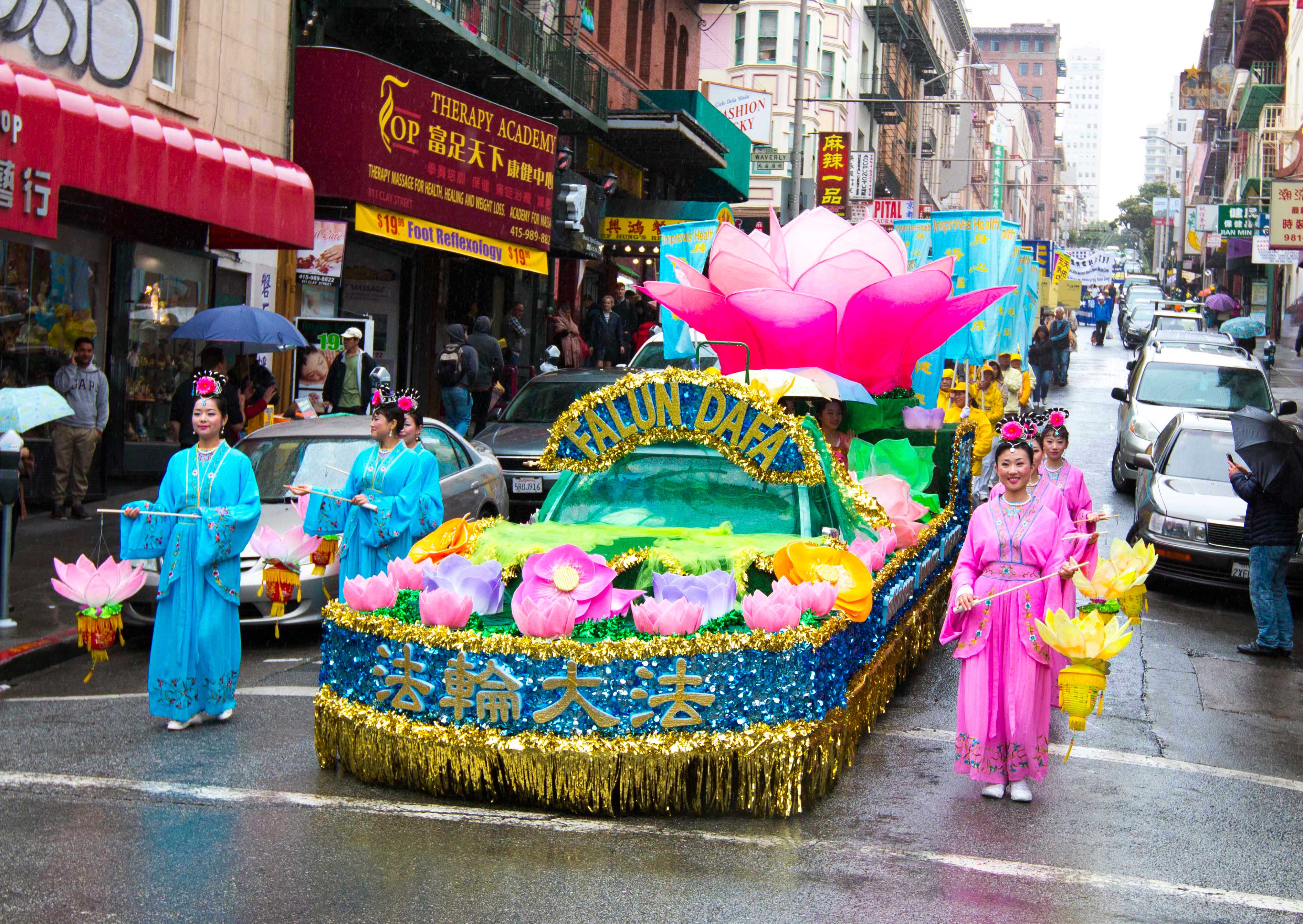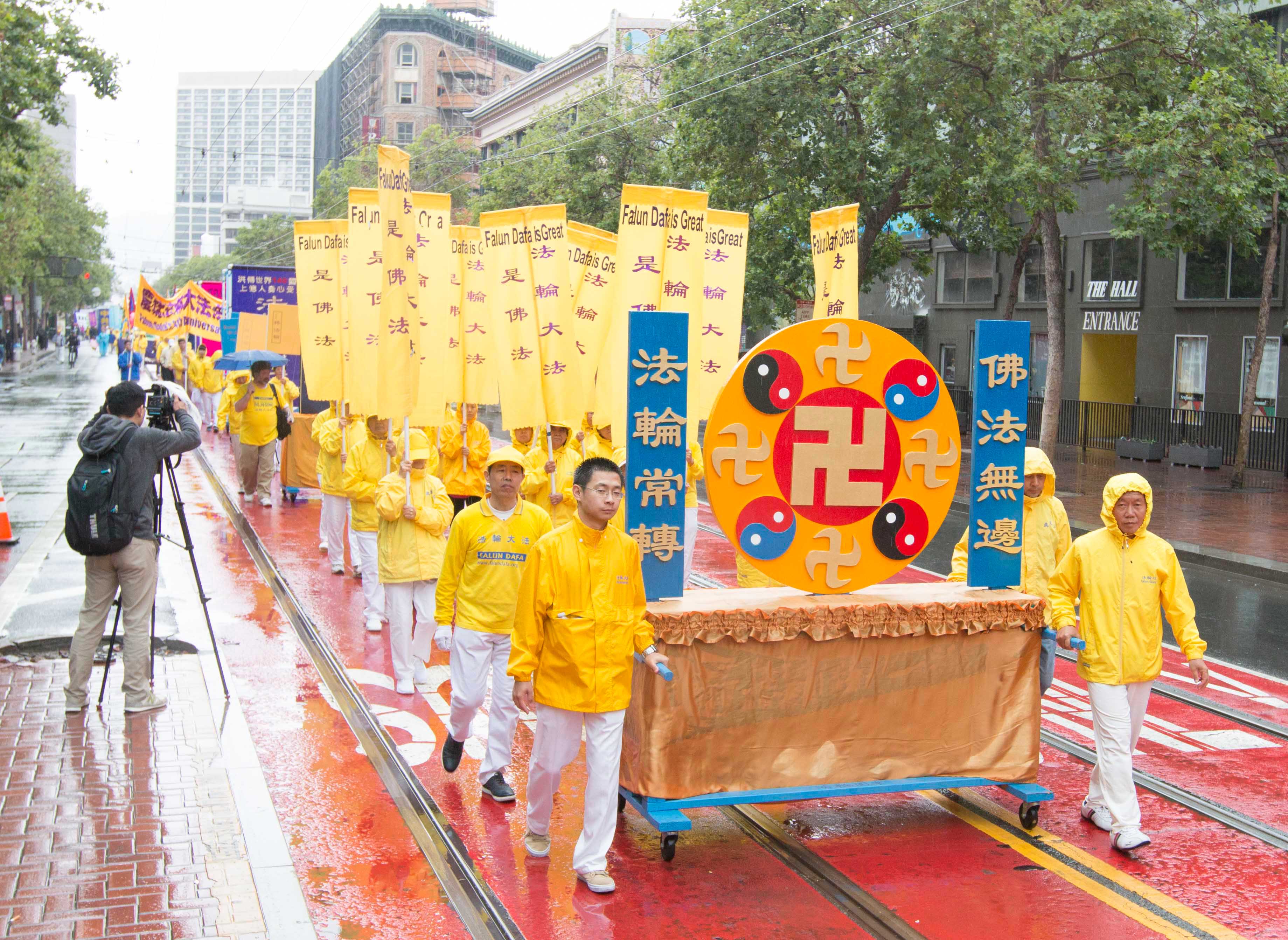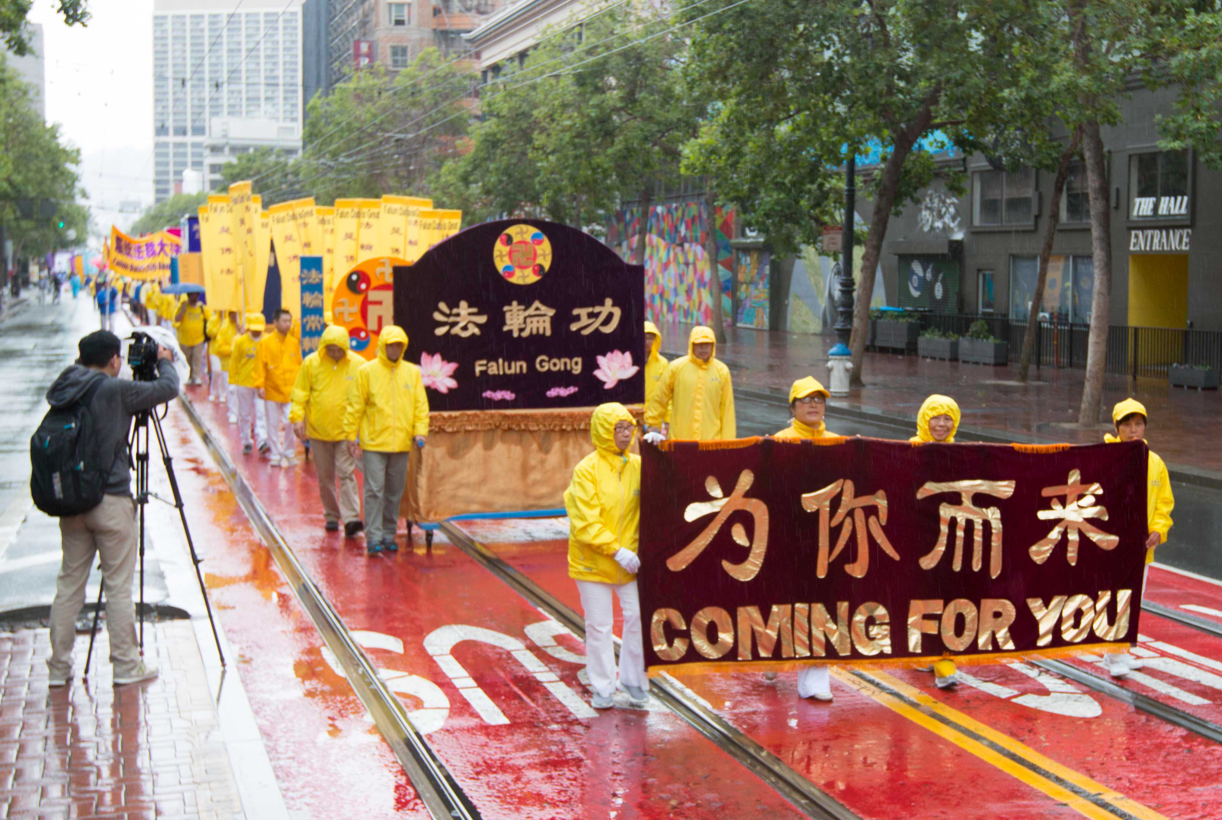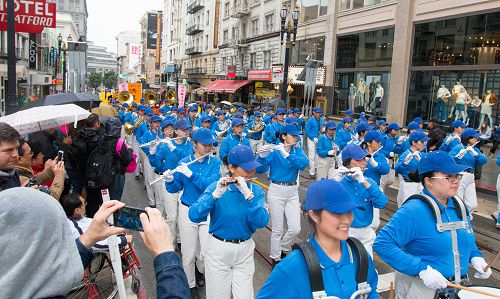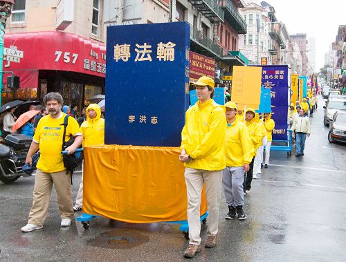 当天天空一直飘着细雨,前来为游行开路的警察Steve一边开路,一边不时提醒学员小心地上的积水。他说:“这个团体太棒了,非常平和,是我所见过的最平和的团体。我觉得旧金山人都会喜欢他们。”他并表示,希望每次都能为法轮功团体开道。