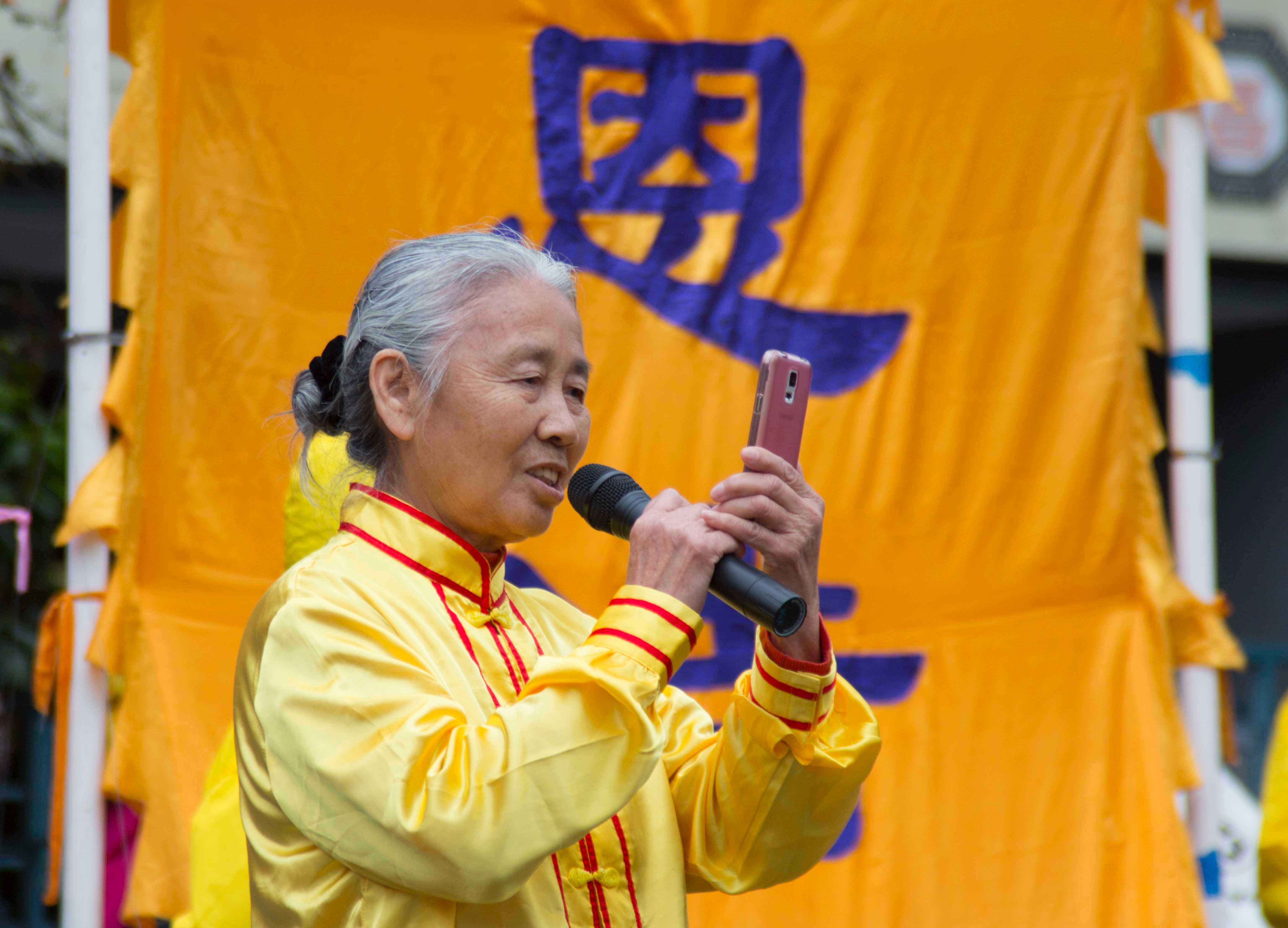 她说:“今年我六十九周岁了,按中国大陆的说法我七十岁了。你们看看我现在那像是个曾身患十多种疾病、又是中晚期癌症患者呀!我现在身体硬朗、精力充沛、乐观豁达,令人羡慕。是法轮功给了我新生!是慈悲伟大的师父给了我一 切!!今天通过庆祝世界法轮大法日活动,让各界朋友们和对法轮功还不太了解、甚至还有各种误解的人讲讲我为什么要炼法轮功,希望各界朋友对法轮功有一个正面的认识和了解。不要被中共的谎言所欺骗,从而仇视、蔑视我们因坚守自己的信仰而无辜被中共残酷迫害的修炼人。千万千万不要因轻信谎言而失去自己美好的未来!”