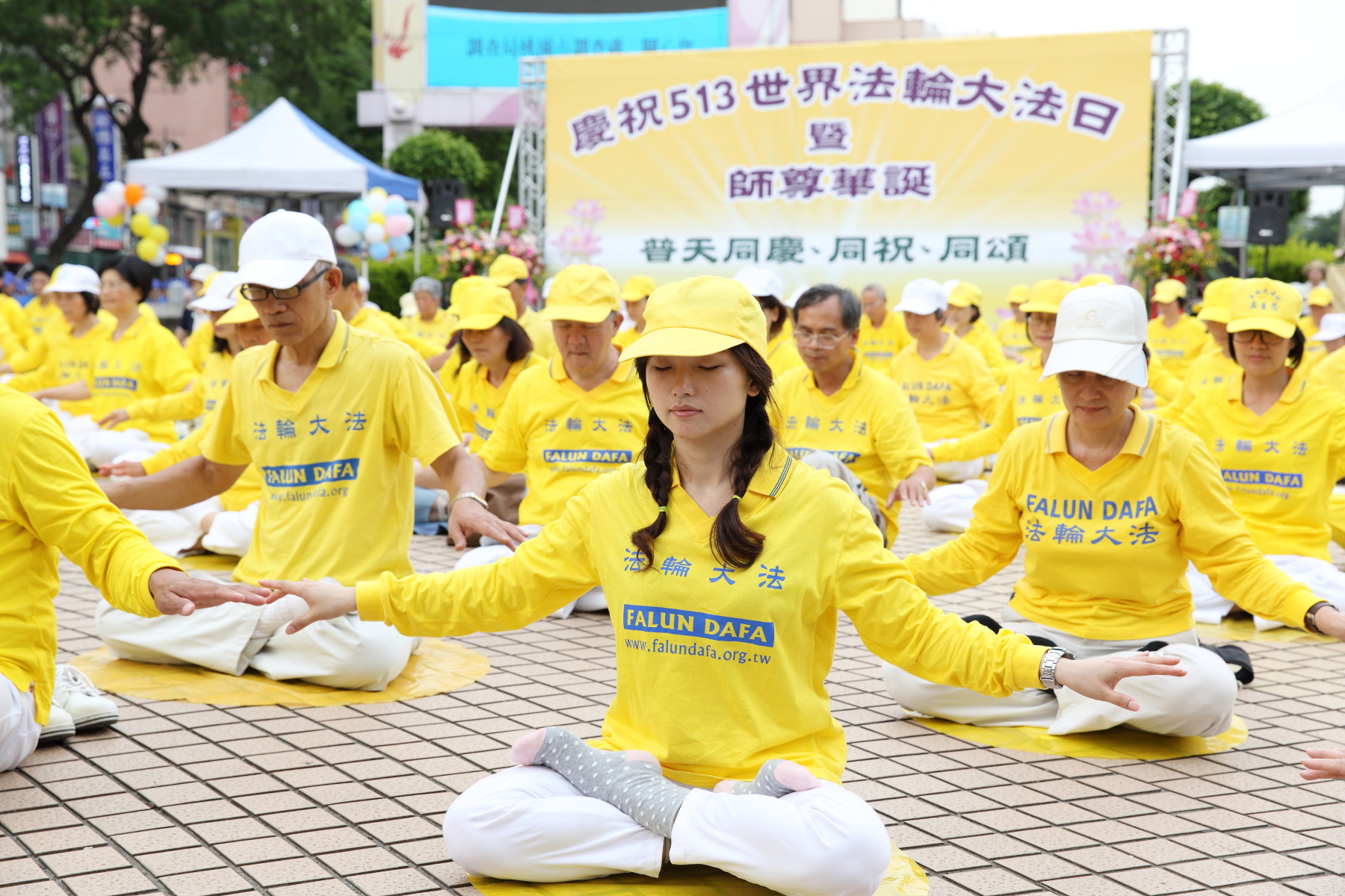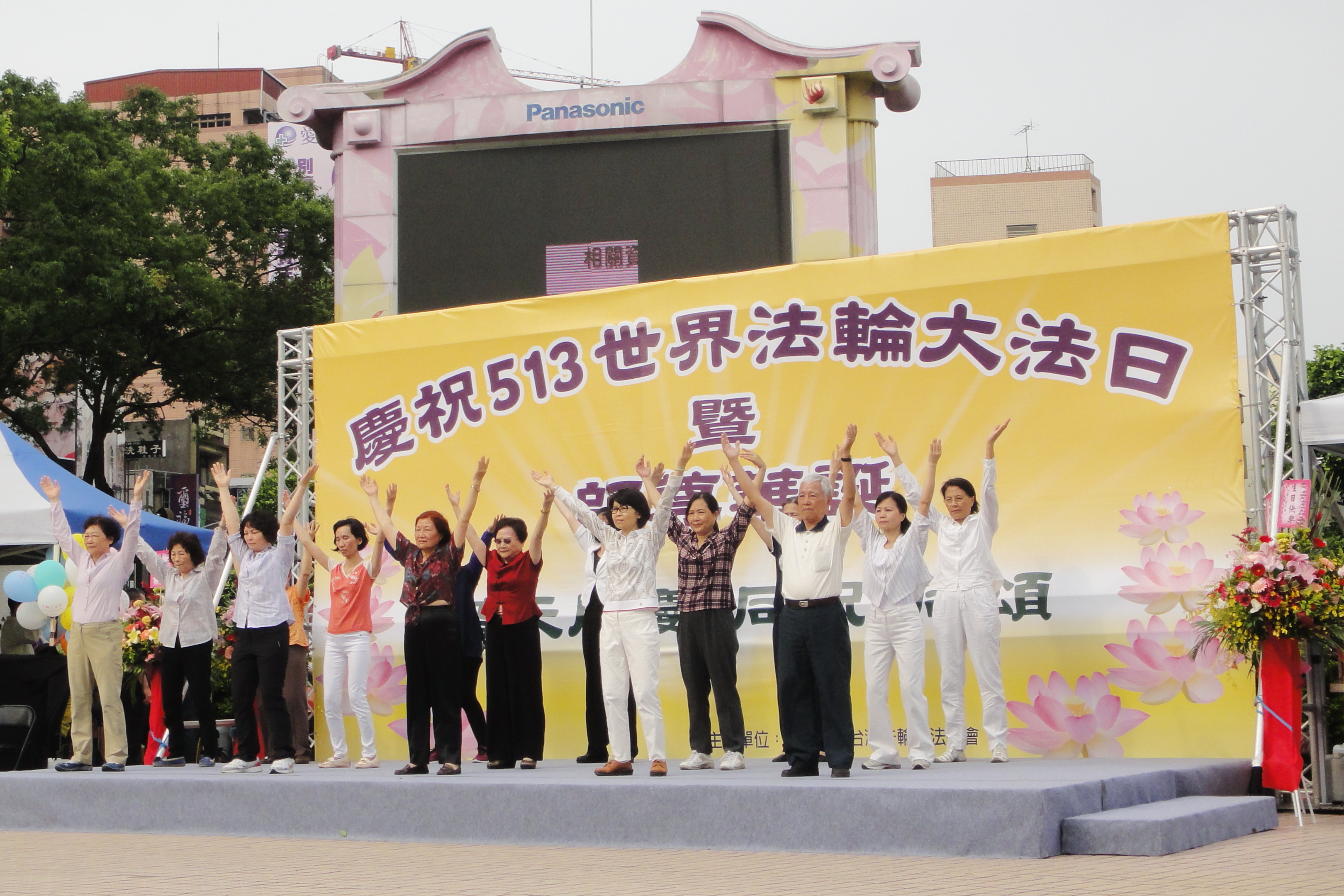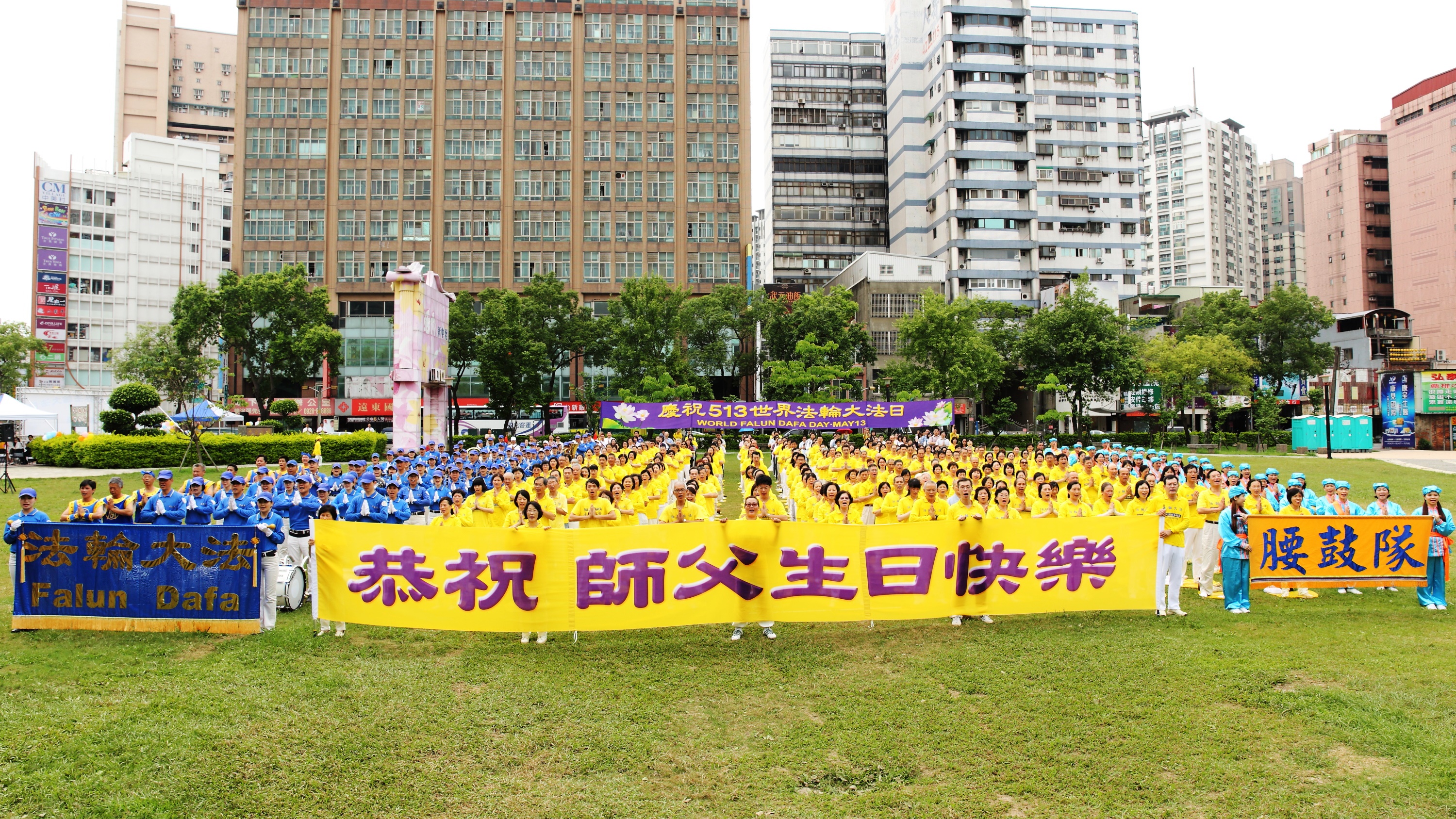 今年是法轮大法开传二十四周年纪念日、第十七届“世界法轮大法日”,也是法轮大法创始人李洪志先生六十五岁华诞。台湾大桃园地区的约六、七百名学员,于五月七日在中坜区地标之一的中正公园,提前举办庆祝大会。