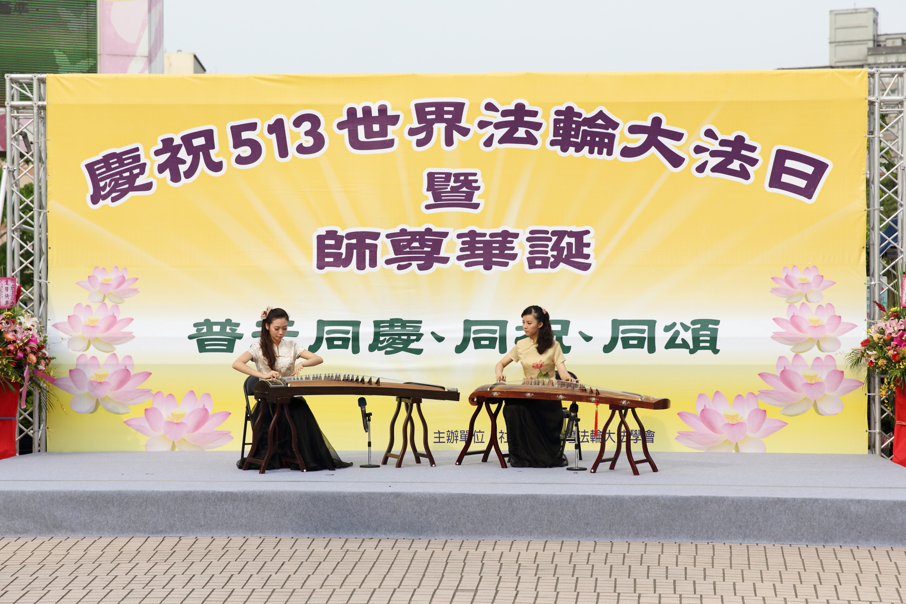 节目于下午三点开始,来自台湾各地学员组成的天国乐团,演奏正气十足、气势磅礴的“法轮大法好”、“法鼓法号震十方”及“谢谢师父”揭开序幕。台湾的天国乐团经常受邀到世界各国表演,足迹遍布香港、日本、韩国、新加坡、马来西亚、印尼、关岛、塞班岛、甚至印度、澳洲,都有天国乐团的足迹。天国乐团成员从十岁到八十岁都有,他们参加活动时,有时要以整齐壮观的队伍游行长达五、六个小时,有的乐器重达几公斤到二十几公斤,背在身上还要一边吹奏,即使遇到刮风下雨,日晒,天国乐团在队伍中都是最挺拔最精神抖擞的,他们修炼法轮功所锻炼的坚强毅力,常常令主办单位佩服不已。