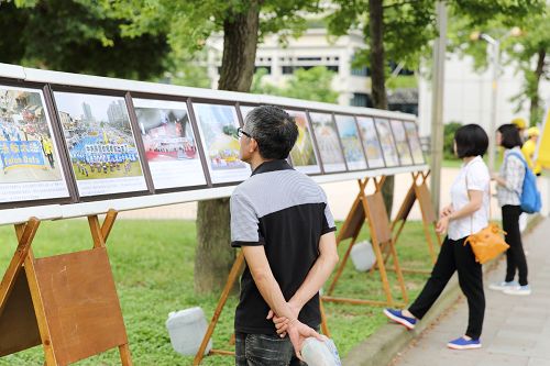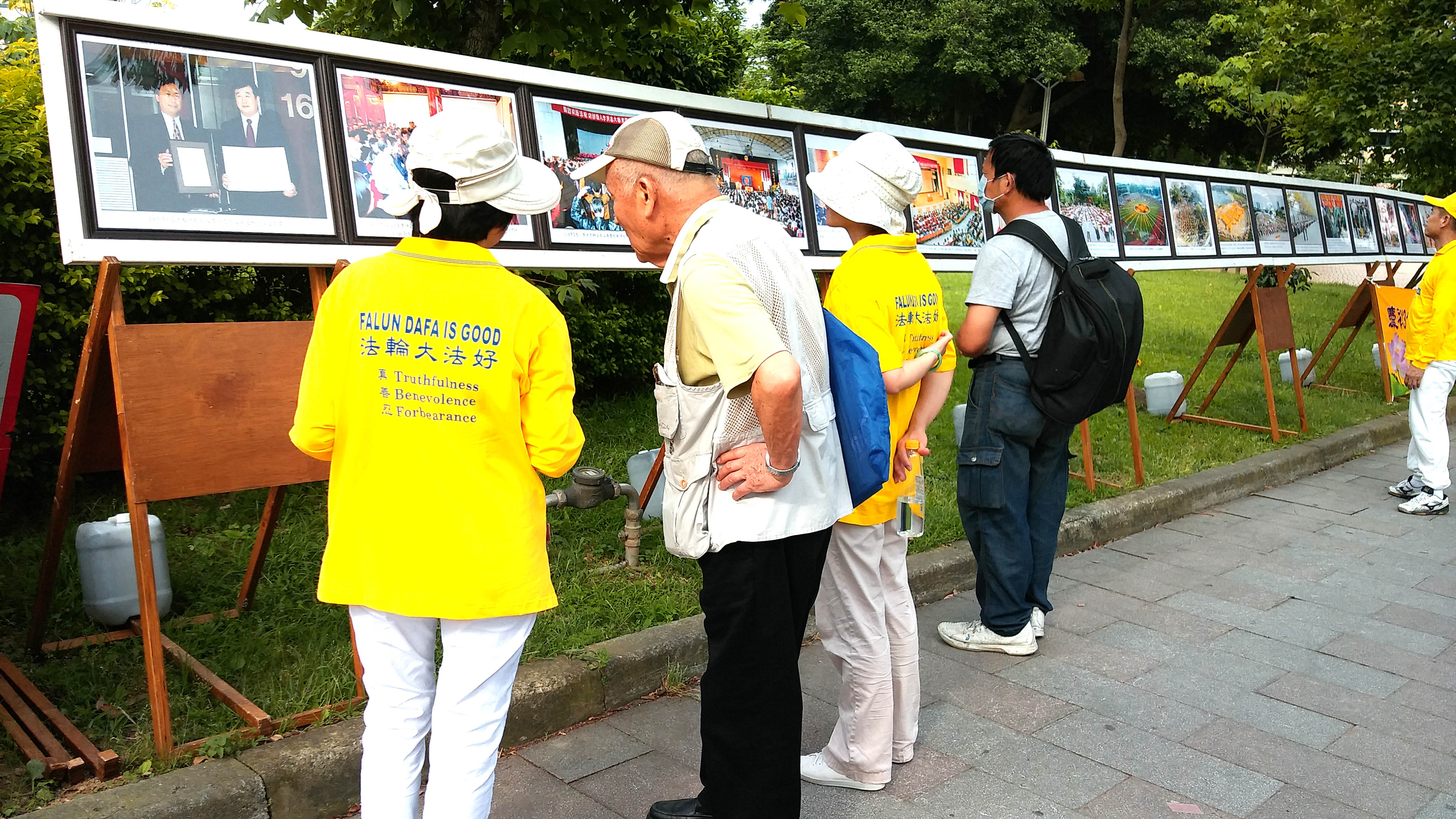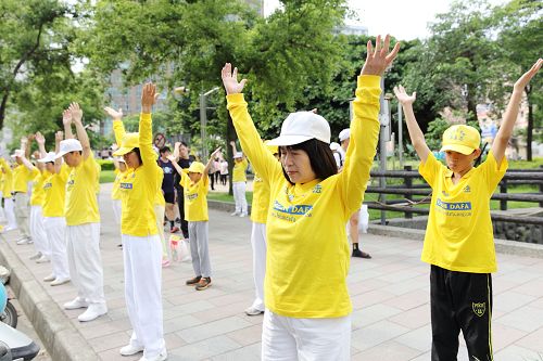 活动最后,由所有参与的学员集体炼功,祥和的炼功场景,让许多过往的民众驻足观赏。有民众仔细看着行人道旁的正法之路图片展,了解法轮功洪传台湾及世界各地的盛况,表示“法轮功蛮了不起的”;还有一位台商表示,他在大陆经商,对于中共的专制,及法轮功遭受迫害感到叹惋,他支持法轮功。