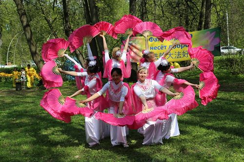 图1-3:莫斯科法轮功学员在库斯明克公园欢庆法轮大法日