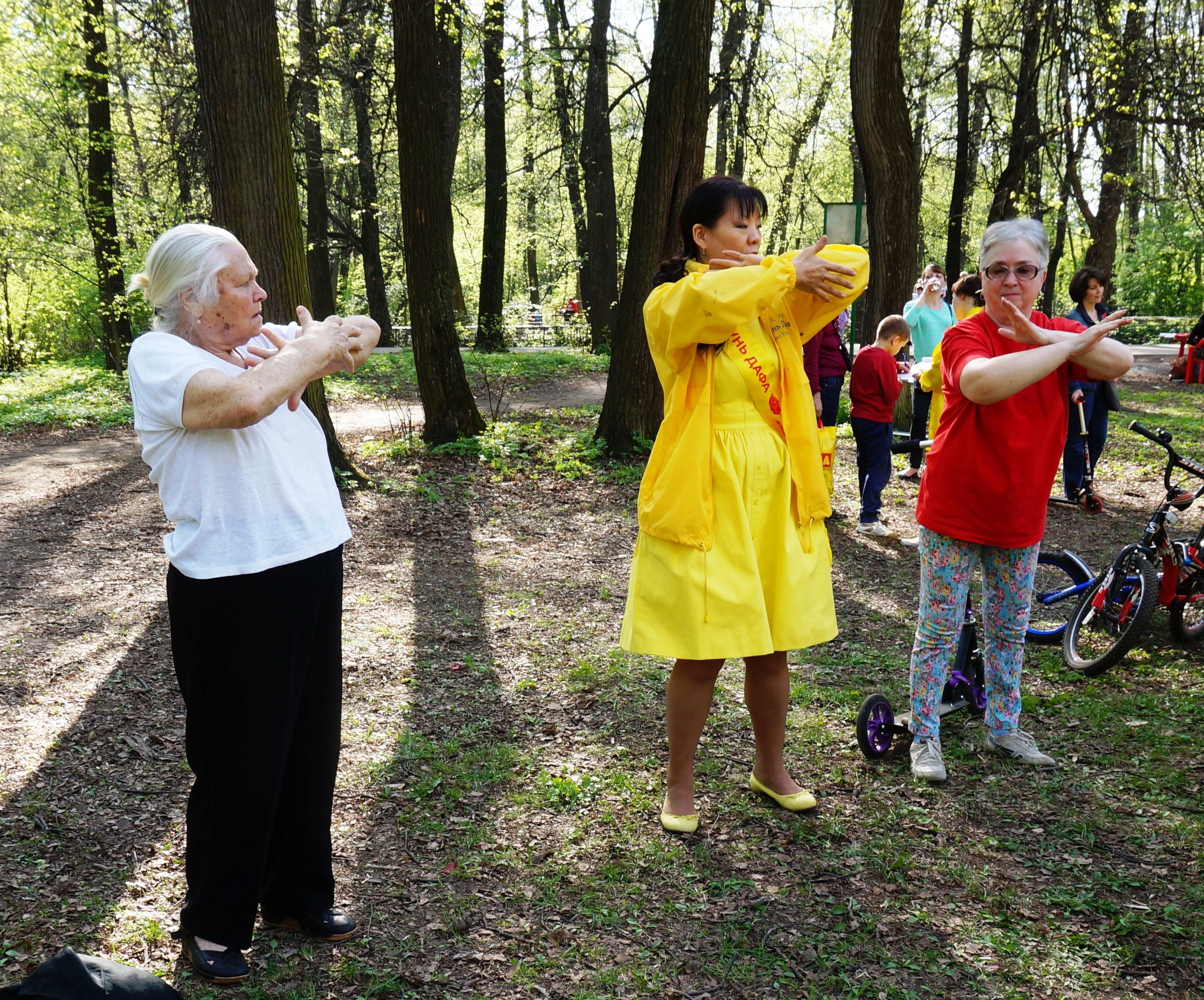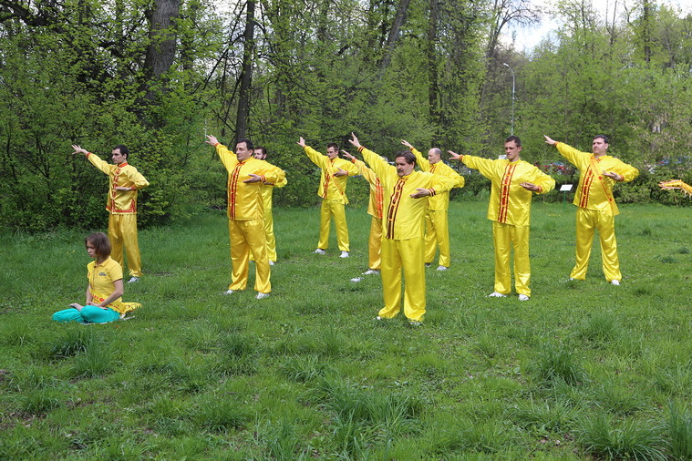 图4:莫斯科法轮功学员在库斯明克公园展示功法