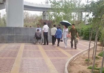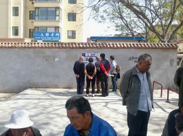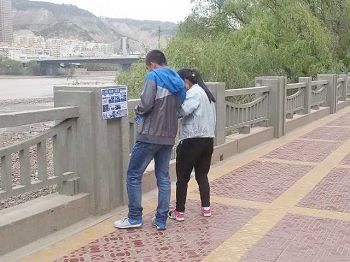 2016年5月,兰州社区、街道、滨河沿岸,过往行人观看有关法轮大法洪传世界以及控告迫害法轮功的元凶江泽民的真相展板和不干胶等。