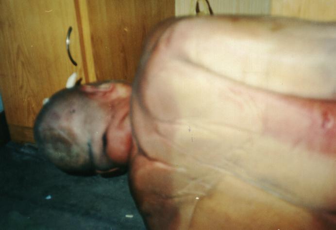 ![]() 赵英奇死时的状态:头部塌陷,右肋缺一块肉,臀部两边各一块黑紫一直延伸到后背、脖子。 |