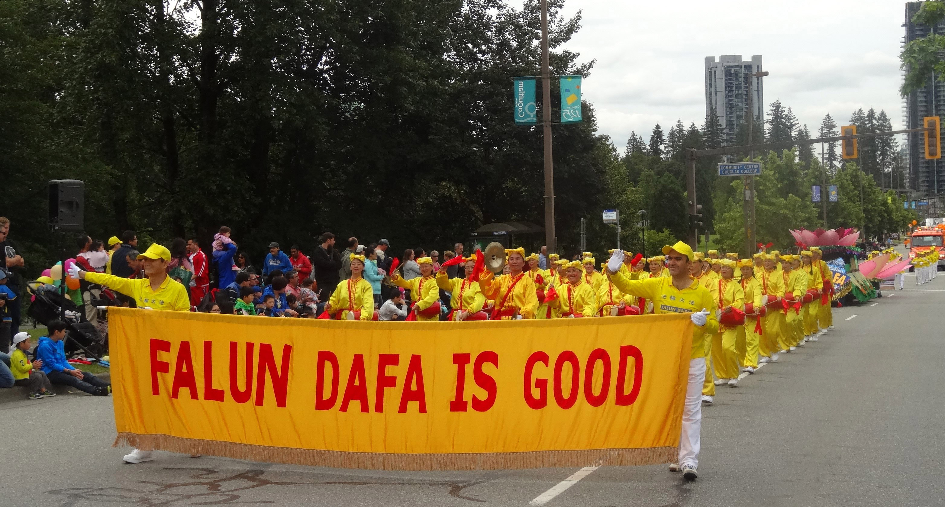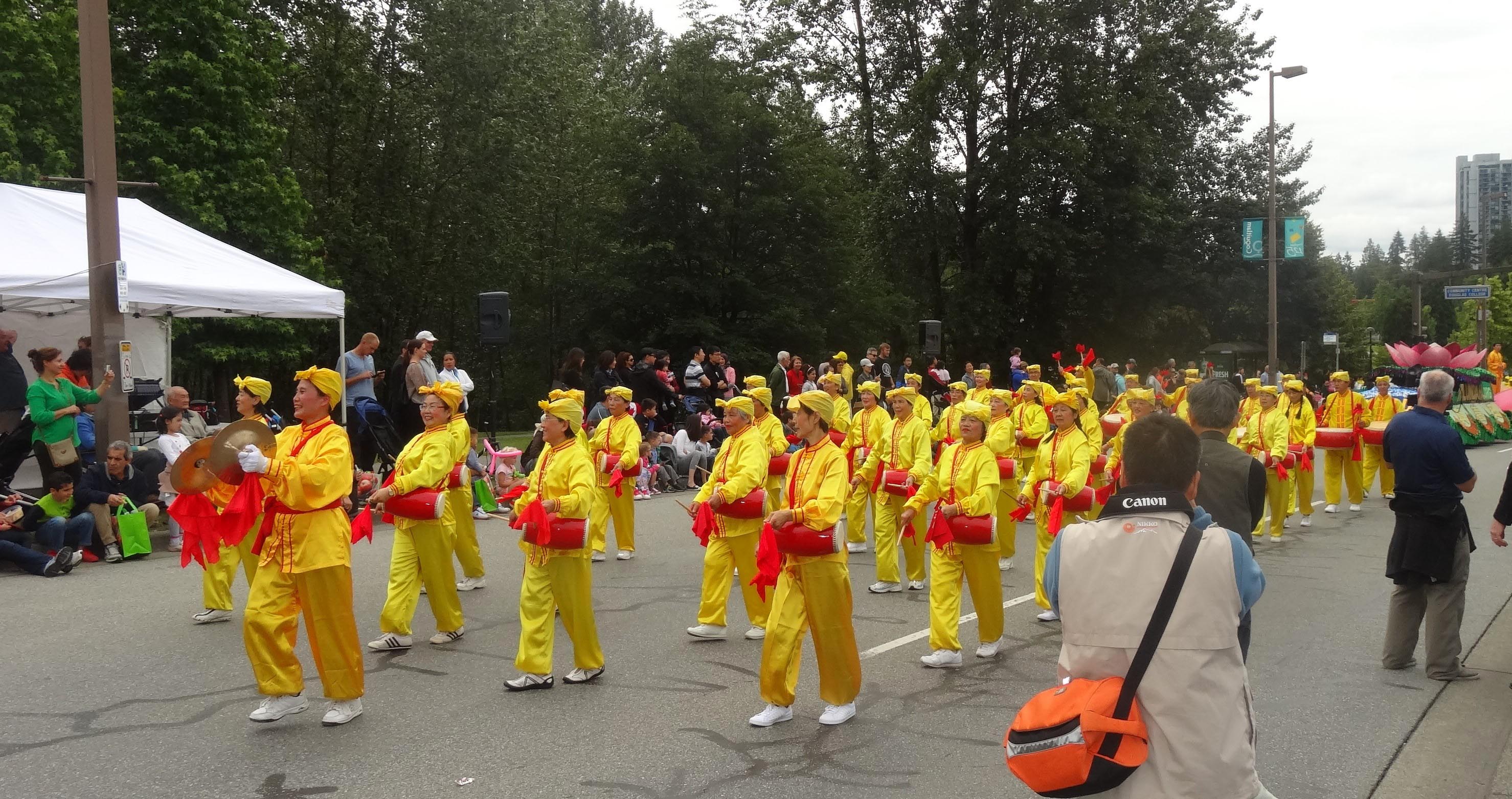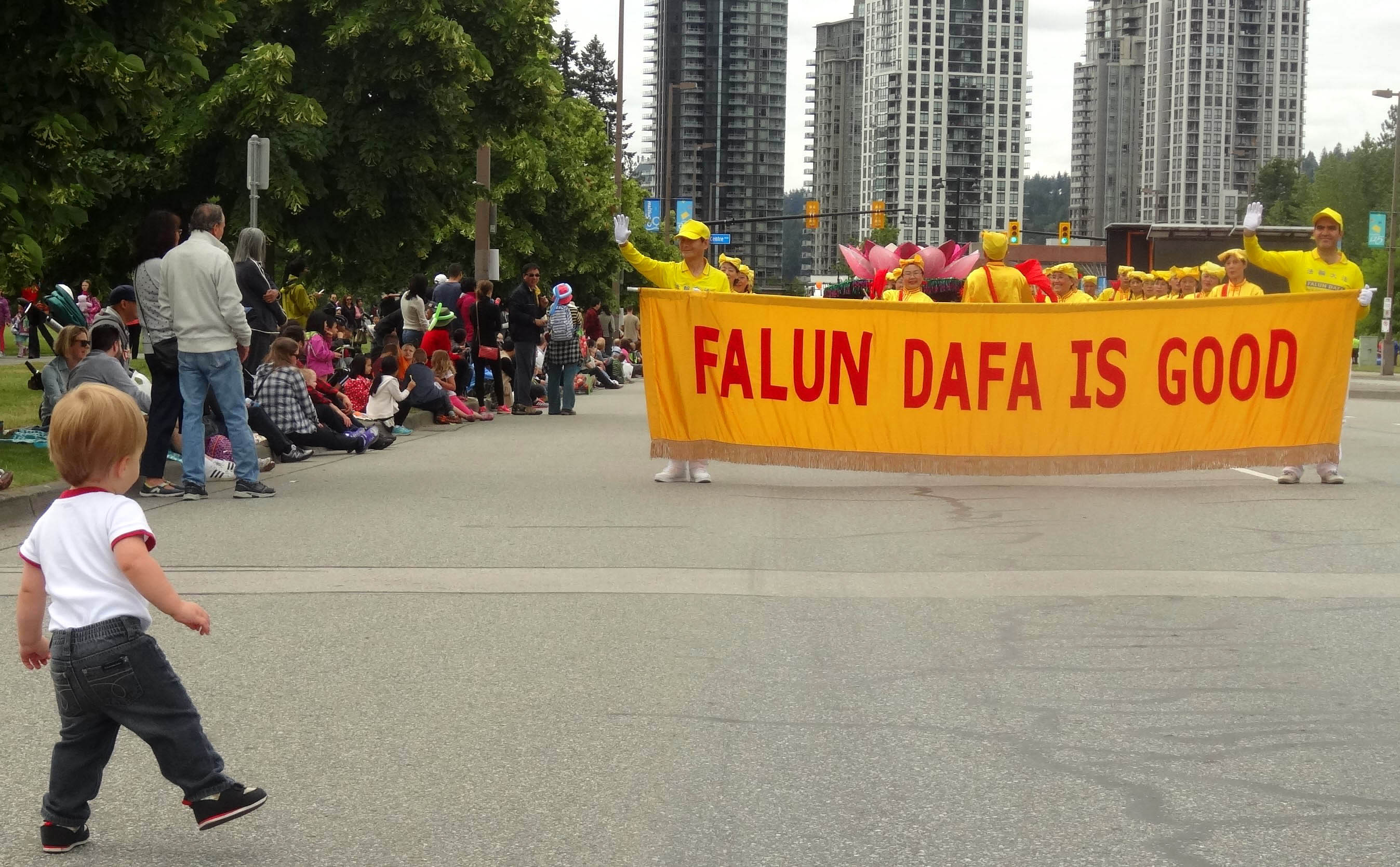 高贵林市(Coquitlam)的泰迪熊节游行(Teddy Bear Festival)成为当地居民们生活中的一个重要活动,当天天气凉爽,市民们结伴在路边欢迎游行队伍的到来。法轮功学员的游行队伍早已为当地市民们所熟悉,人们纷纷向法轮功学员的游行队伍挥手致敬,并拍摄法轮功学员的游行队伍,很多观众纷纷拿了法轮功真相资料,其中包括很多华人观众,很多华人接了法轮功真相资料并在路边阅读。